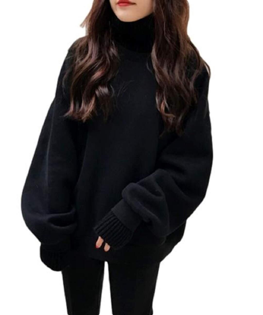 【努力特価】[1/2style] ハイネック裏起毛トレーナー 無地 ゆったり プルオーバー 長袖 レディース 秋冬〜春先
