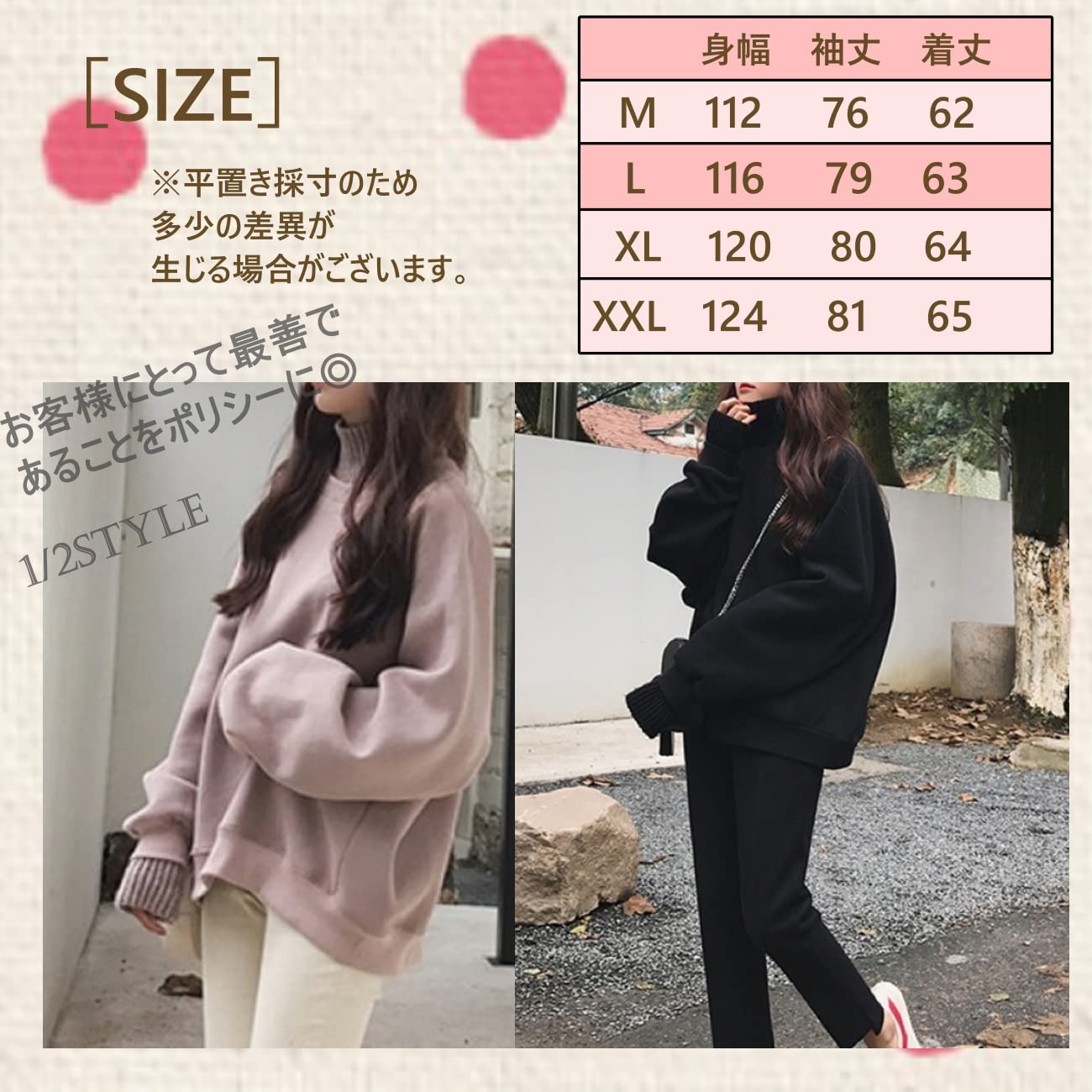 ![【努力特価】[1/2style] ハイネック裏起毛トレーナー 無地 ゆったり プルオーバー 長袖 レディース 秋冬〜春先](https://baseec-img-mng.akamaized.net/images/item/origin/92538cb3476a992a6da278df9f5bc4a3.jpg?imformat=generic)