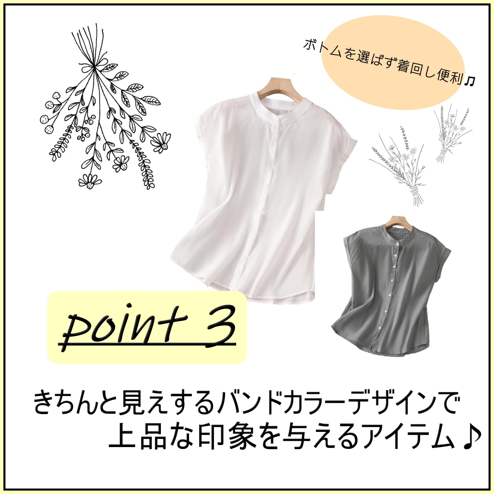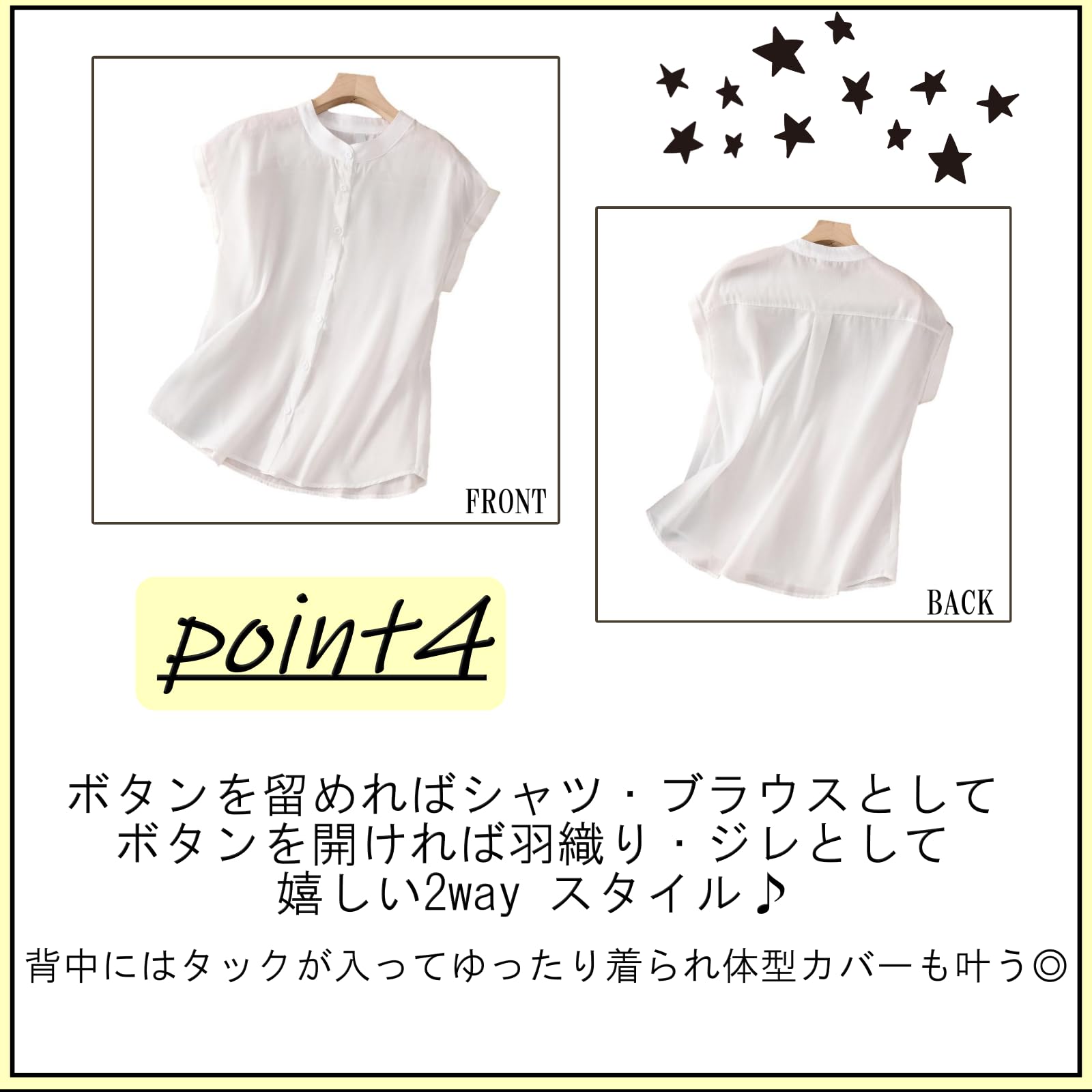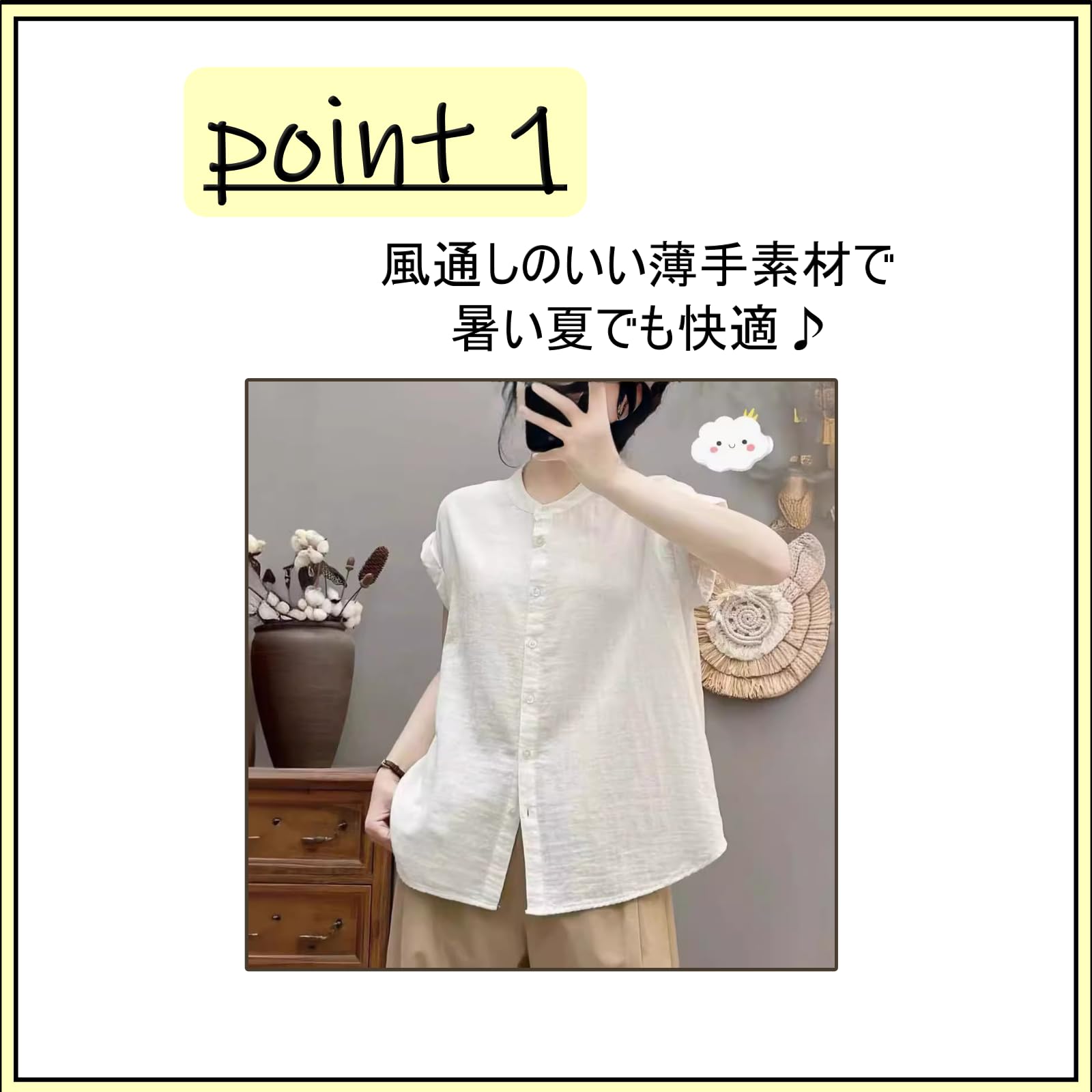 着まわし力が万能な大人トップス。比翼バンドカラーデザインのフレンチスリーブシャツ◎リネンライクで涼し気な印象に。清涼感があり、きちんと見えしながらもリラクシーな一枚。風通しのいい薄手素材で暑い夏でも快適に過ごせます◎