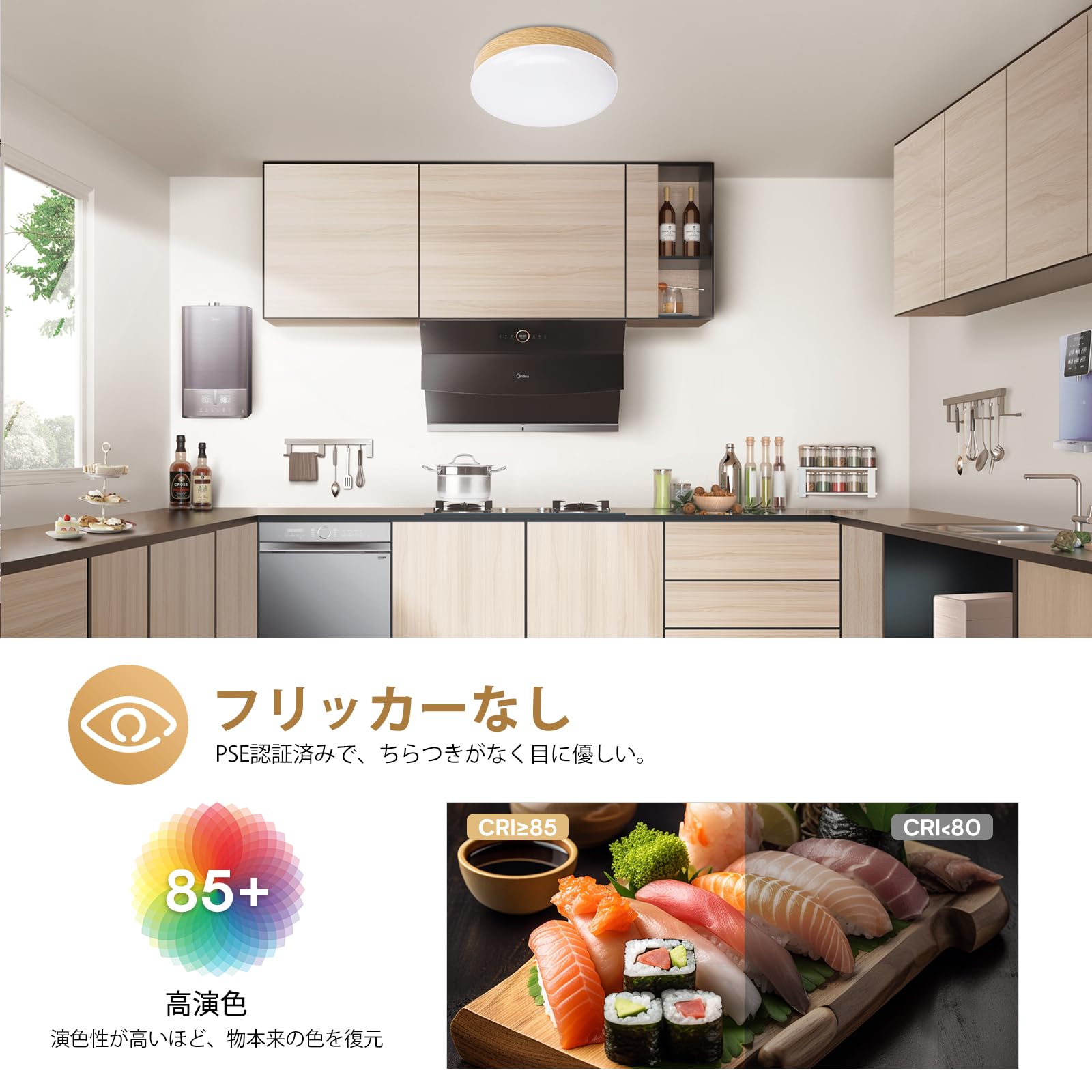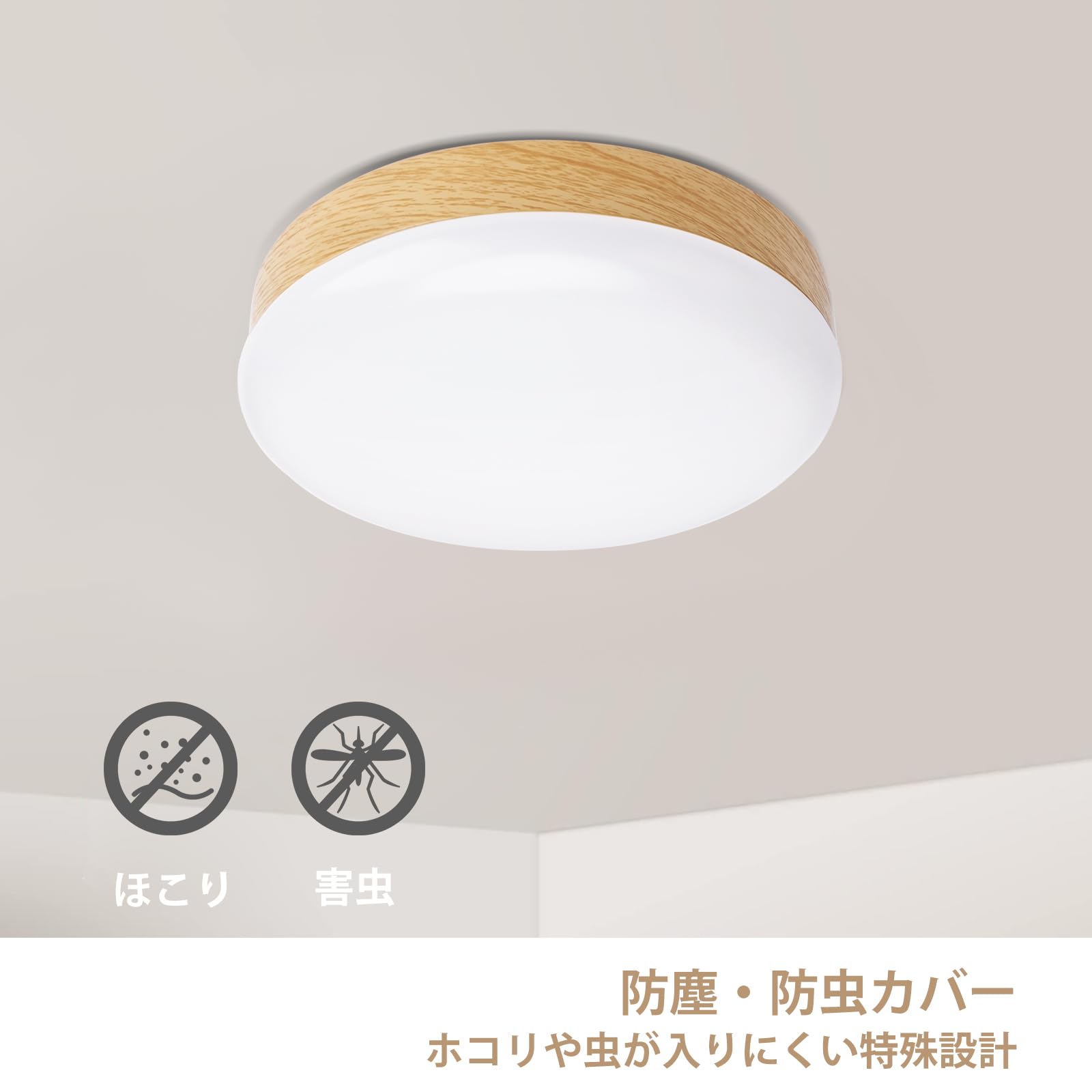 【薄型設計&木目調】この製品は3.3cmの驚くほど薄いデザインが特徴です。その極薄設計により、天井の低いお部屋でも圧迫感を感じさせません。部屋の空間に自然と溶け込み、滑らかで洗練された外観を提供します。うっすらとした木目で、ナチュラルで温かい雰囲気を演出します。和室にも洋室にもよく合います。