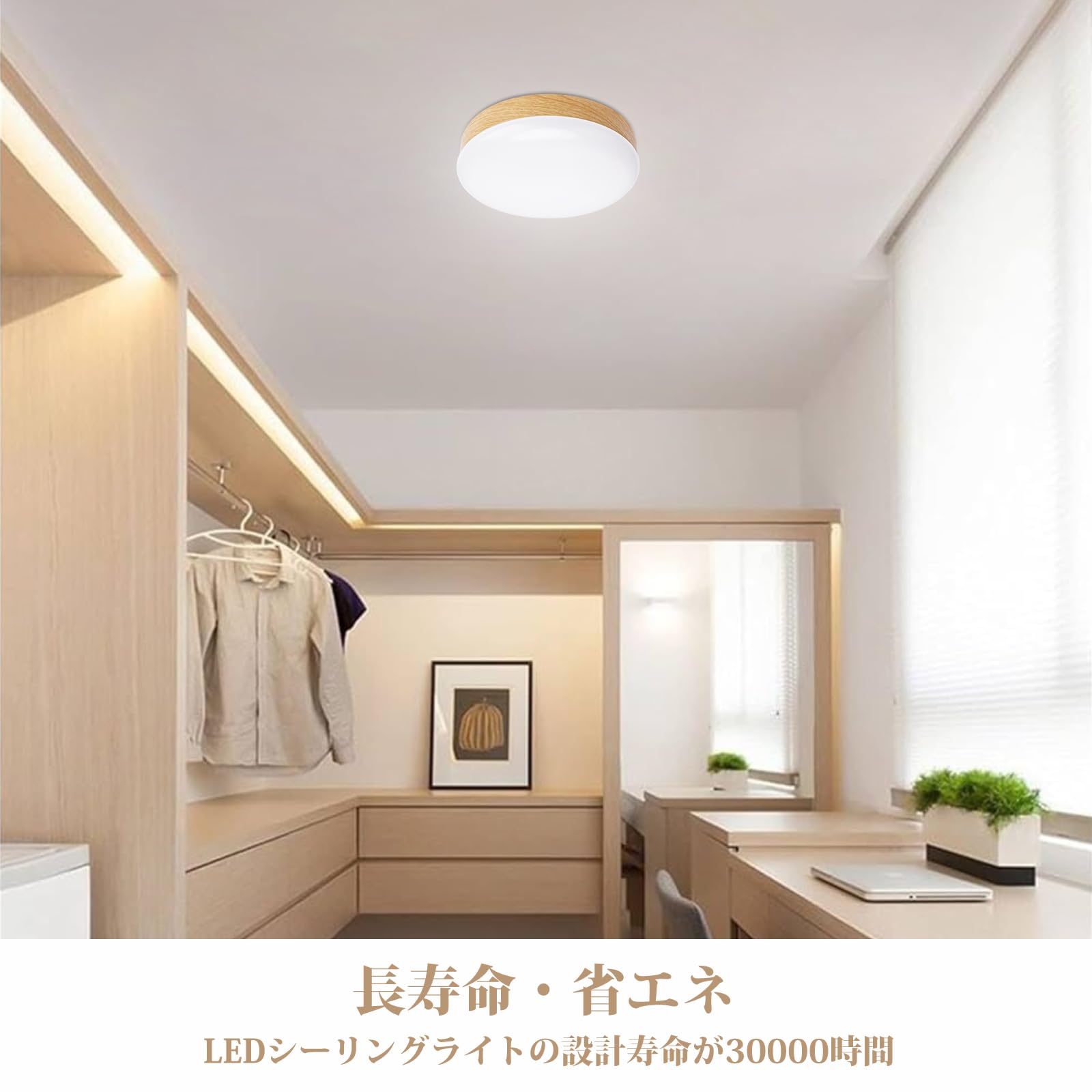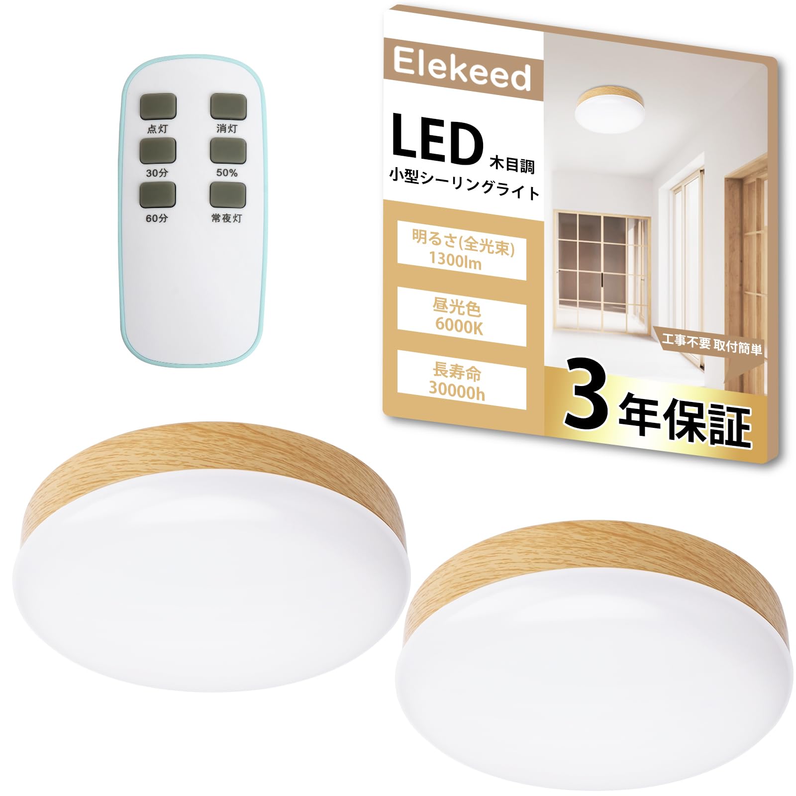 2個セット Elekeed シーリングライト 小型 木目調 リモコン付き 昼光色 1300lm 照明器具 天井 LED ワンタッチ取付 コンパクト 天井照明 廊下 玄関 トイレ 階段 台所 長寿命 高演色 節電対策