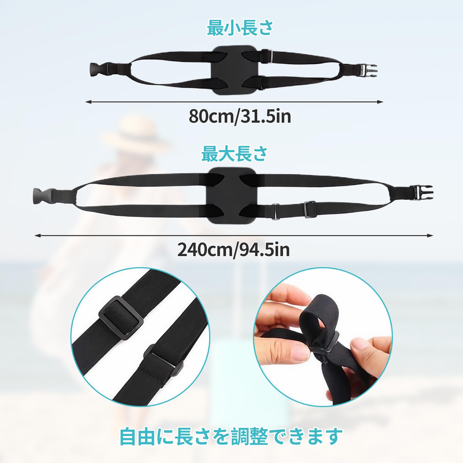 【商品の仕樣】サイズ:長さは55cm-80cm、伸縮後の長さは220cmまで。重量:90g。バッグの落ち防止ベルトとして使用可能です。スーツケースを崩れ防止ベルトとして使用可能です。