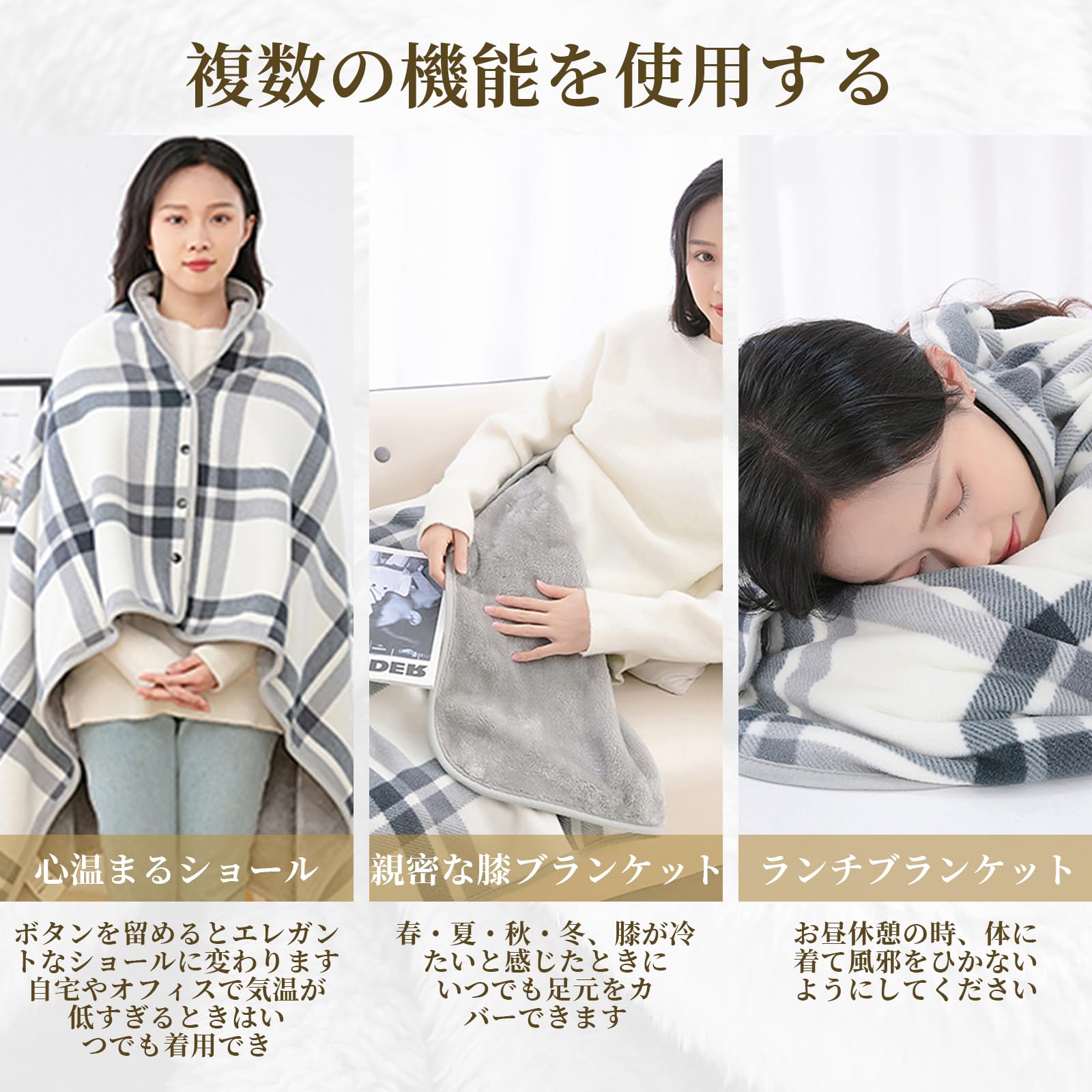 ![【努力特価】[Junerose] ひざかけ 肩当て 肩掛け ブランケット 大判 厚手 着る毛布 メンズ レディース ブランケット 防寒対策 静電気防止 オフィス アウトドア 車内 出張 キャンプ](https://baseec-img-mng.akamaized.net/images/item/origin/9f447cb3bce9c95d23671bd642d7bd89.jpg?imformat=generic)