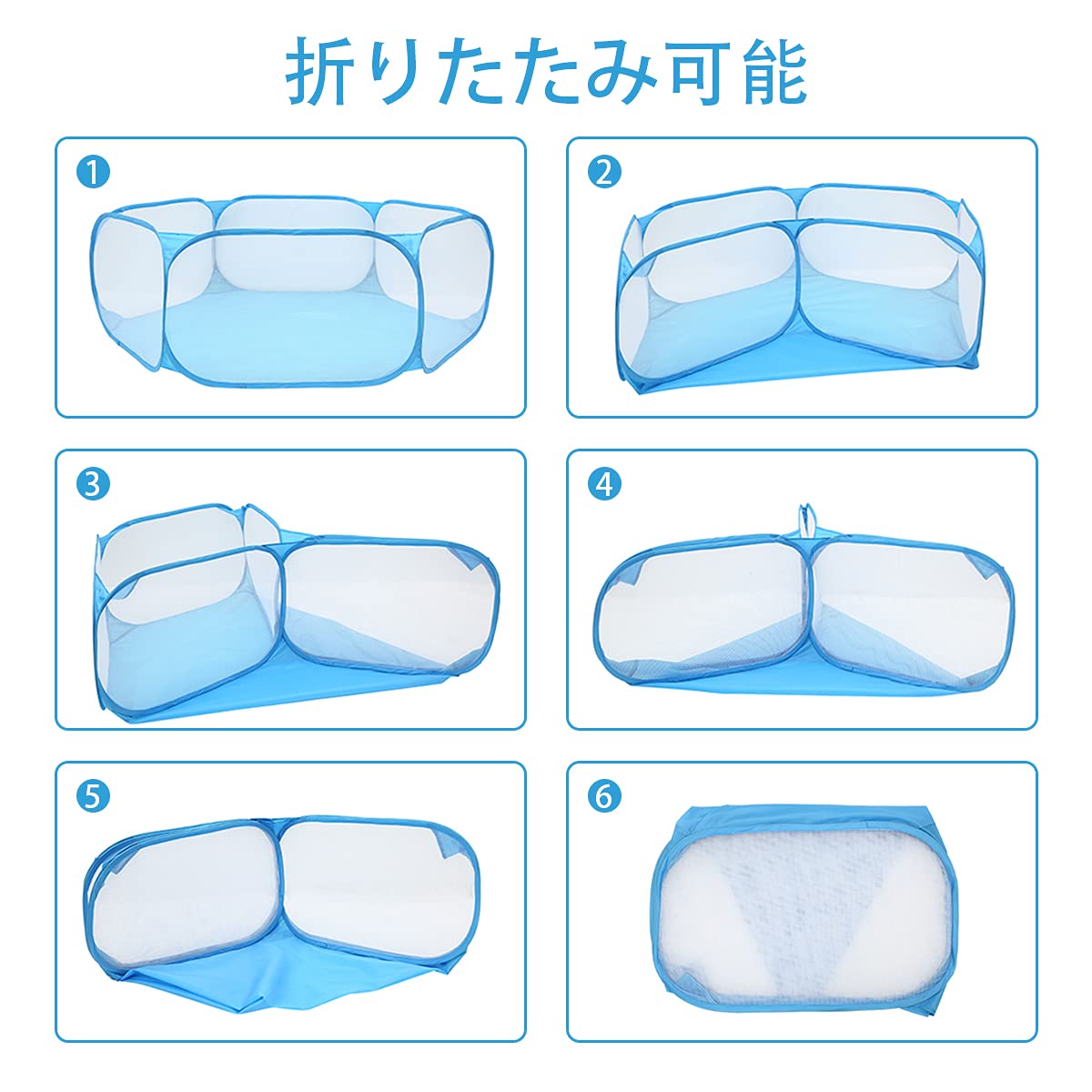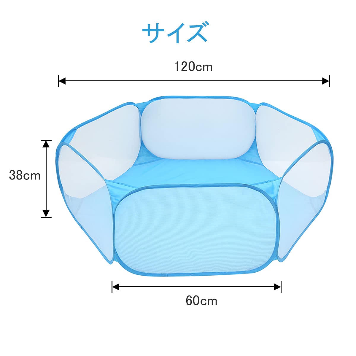 ペット プレイ サークル 小動物フェンス アウトドア/室内 遊び用のサークル 折り畳式 小動物 メッシュ ケージフェンス 収納簡単 軽量 脱走防止 袋付き (ブルー)120cm