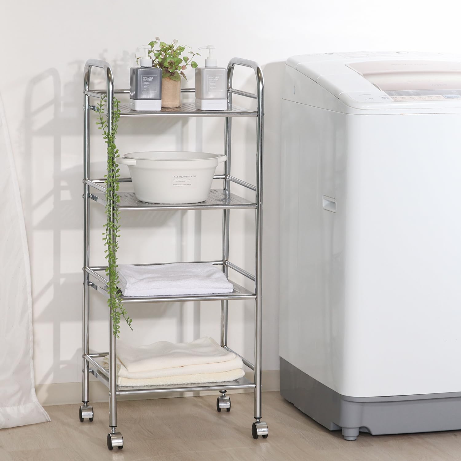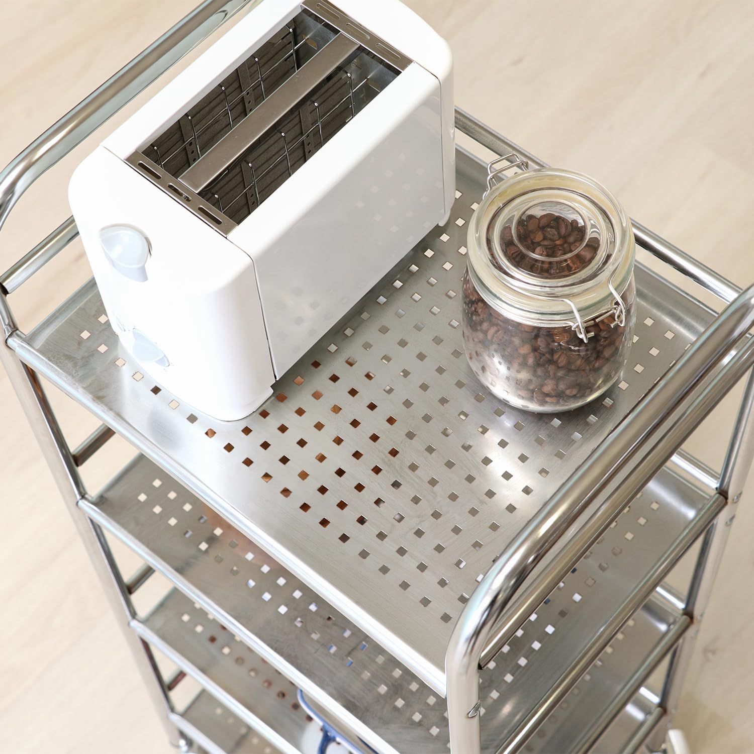 不二貿易 キッチンワゴン ラック 4段 幅40×奥行32×高さ97.5cm シルバー キッチン収納 スチール キャスター付き 組立商品 93399