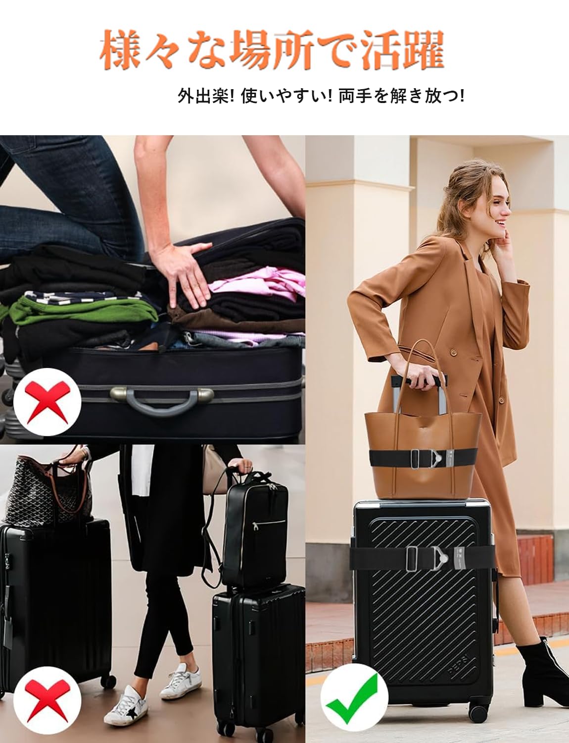 【中身の飛び出しを防ぐ】万が一、スーツケースのロックが破損した時、スーツケースが開くのを防ぐためのベルトとしても使用可能!
