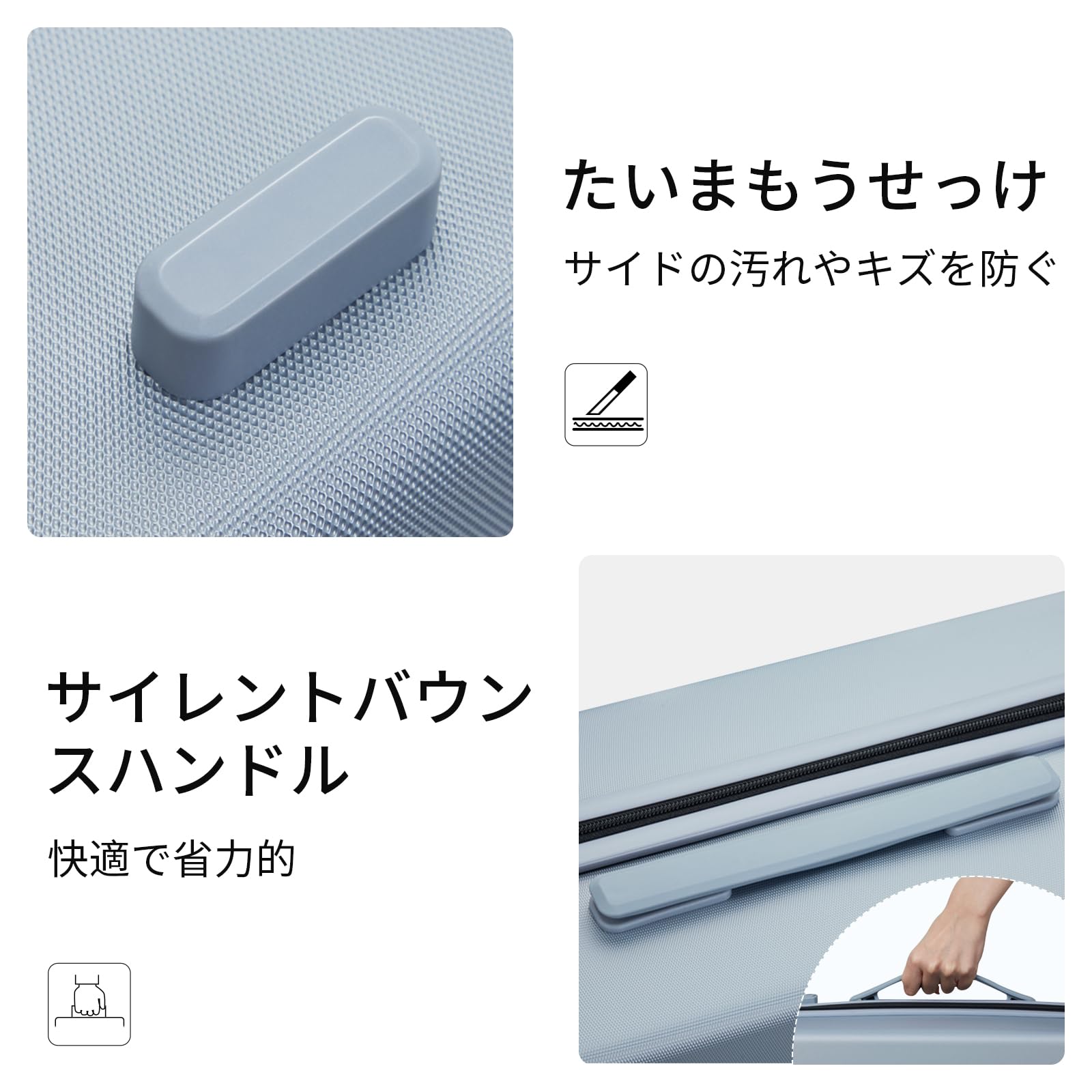 【より良い材料】OEKO-TEX@快適な裏地で、肌着も安全に保管できます。ピュアPC材質 キャリーケース 超軽量 耐衝撃、頑丈でスクラッチを防ぎ、ABS素材の製品よりも丈夫で耐久性があり、ABS+PCスーツケースよりも軽量で持ち運びが簡単です。スタイリッシュなデザインと落下に強い特性で長く愛用可能。
