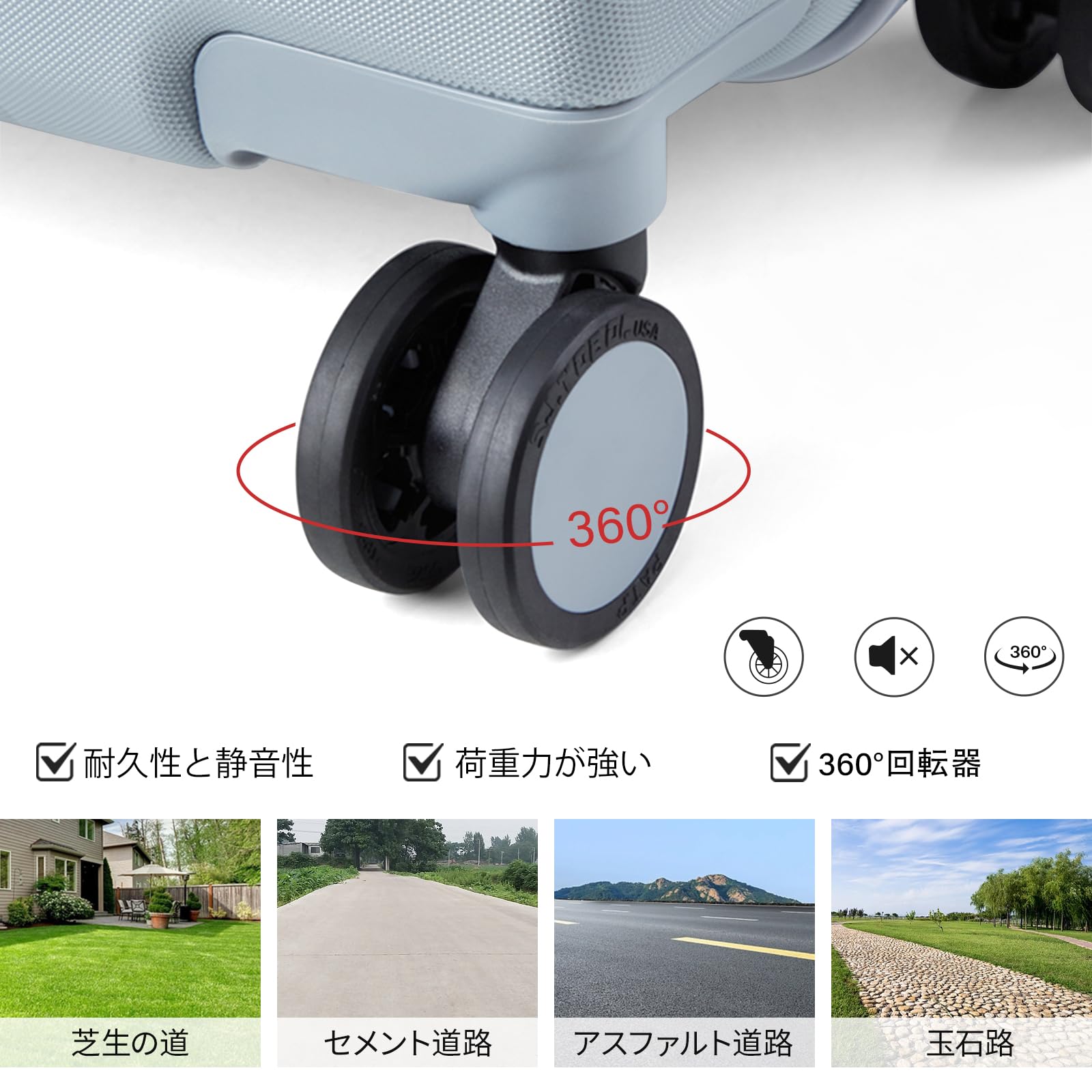 【優れた操作性】ハードタイプスーツケースには、堅牢なアルミニウム合金の伸縮可能なハンドルが付いており、ご自分の身長に合わせて、最適な高さに調節できます。どこでも迅速に操作することができます。このスーツケースには360°回転ホイールが搭載されており、スムーズな滑りを確保しています。柔らかいゴムトップハンドルとサイドハンドルで、安定を高めます。
