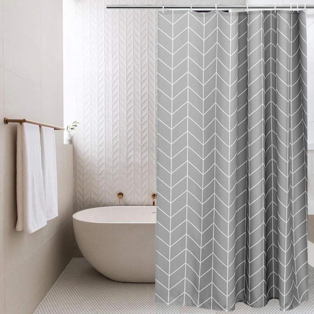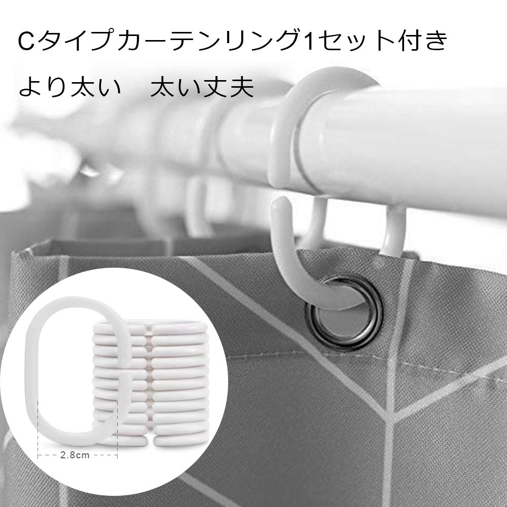 【サイズ】:幅120cm*丈150cm 素材:100%ポリエステル 仕様:防水防カビ パッケージ内容:本体*1+カーテンリング*8 カラー:ストライプ グレー