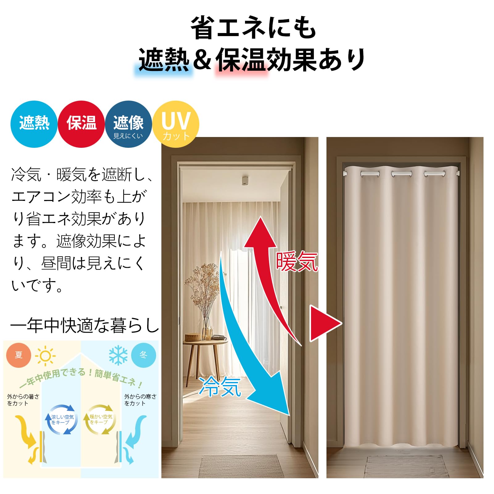 特徴 UVプロテクション, 保温, 断熱, 遮光, 間仕切り