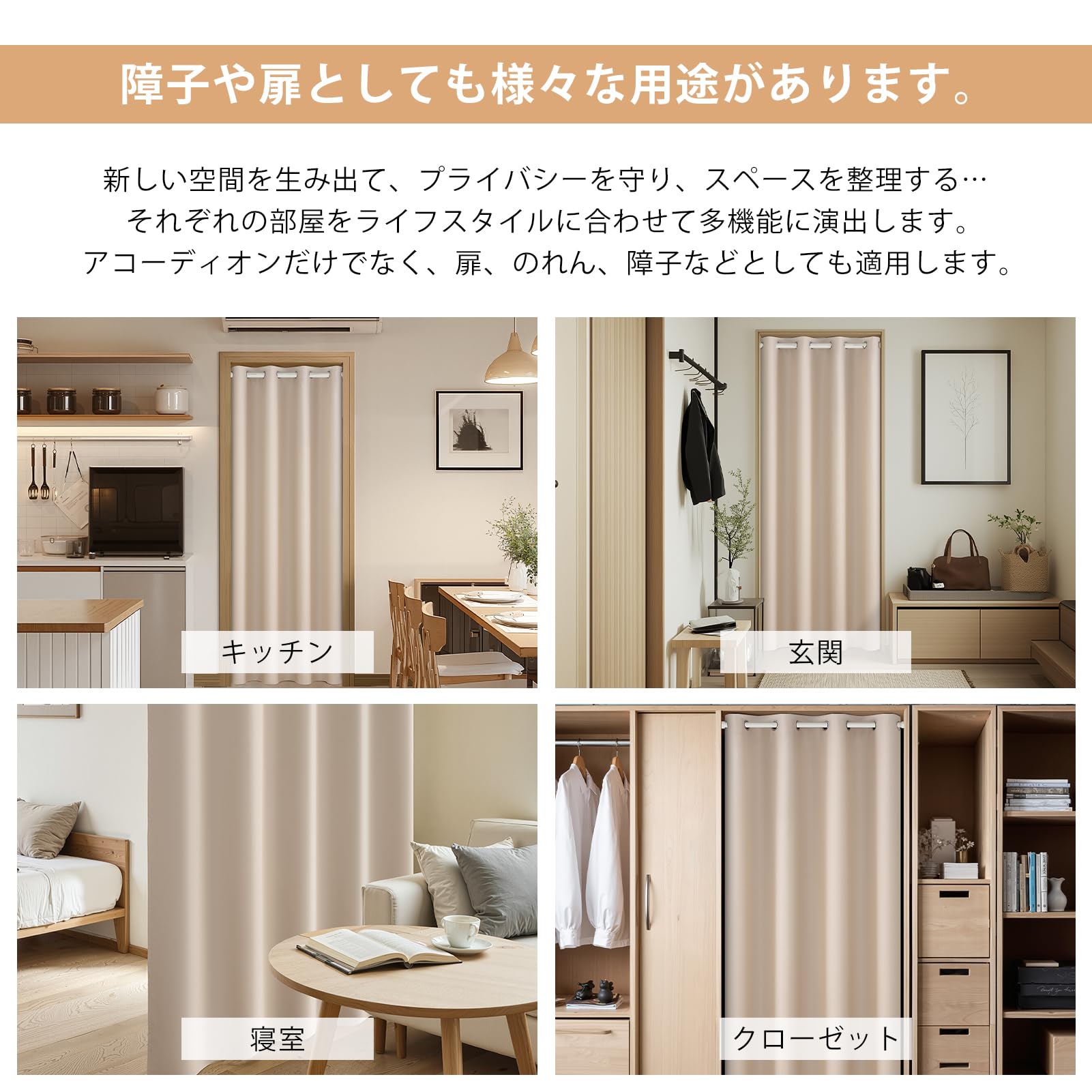 【サイズ】 :幅120cm*丈200cm「幅60cm-90cm範囲の設置場所に適応しております」ハトメ直径:約4cm。