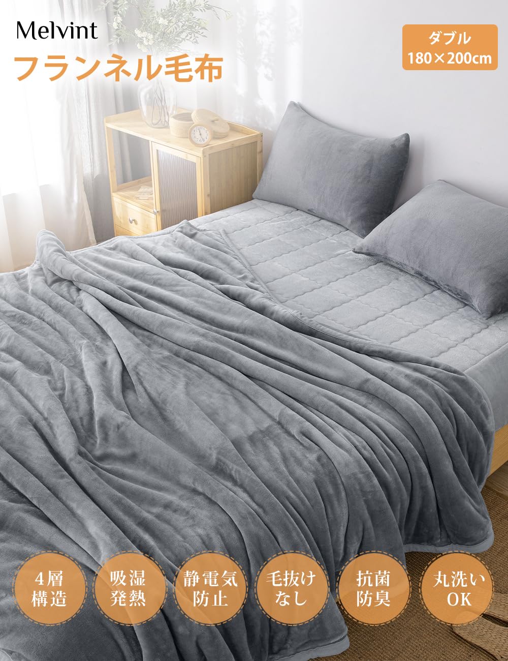 【数量限り】毛布 ダブル ブランケット 「4層構造・4倍暖かい」 掛け布団 冬用 吸湿発熱 厚手 暖かい マイクロファイバー 柔らかく肌触り 洗える 静電防止 抗菌防臭 毛玉なし タオルケット ランネル (グレー 180*200cm)