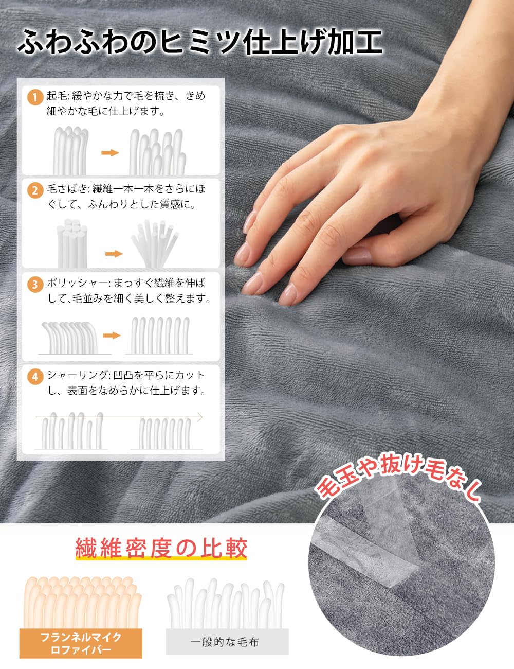 ?【とろける肌ざわり】従来フランネルを30%極細化し、シルクのように滑らかな表面加工を実現。指先が沈み込むような弾力と、頬ずりしたくなるやわらかさで“とろけるタッチ”を体感してください。