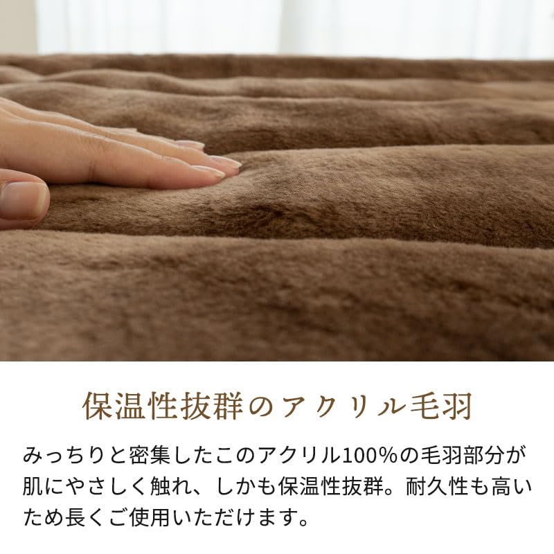 【サイズ】約 140×205 cm 【組成】[表地]パイル糸(毛羽部分):アクリル100% 地糸:ポリエステル100% [裏地]ポリエステル65%、綿35% [詰め物]ポリエステル100% 【製品重量】約 2.2 kg