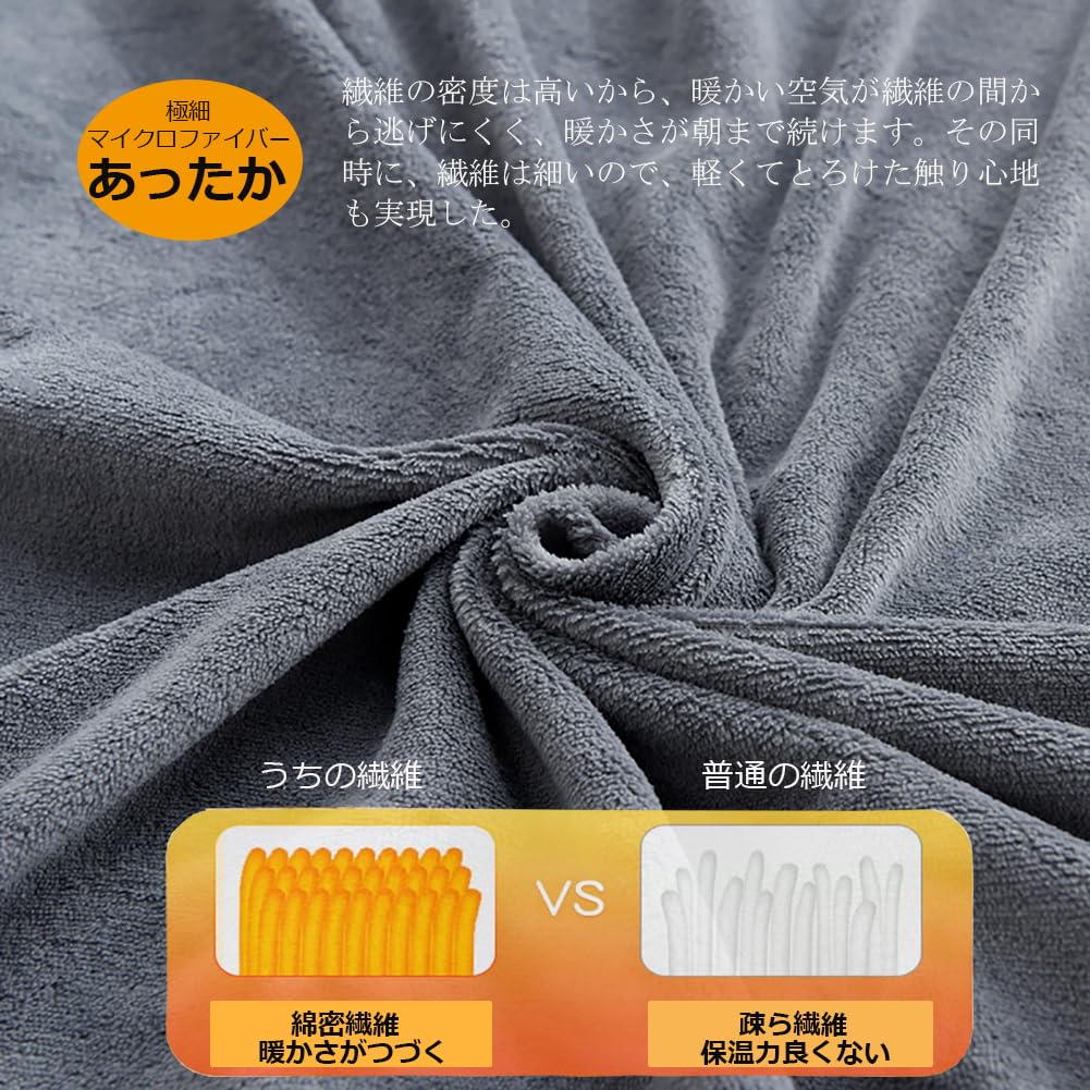 <発熱性抜群>密度が高いマイクロファイバーは暖かい空気を繊維の間にたっぽり含み、ずっとあたたかいです。ふわふわで滑らかな肌触りも備わているため、暖かさを感じる同時に、心地よい触り心地も実感いただけます。