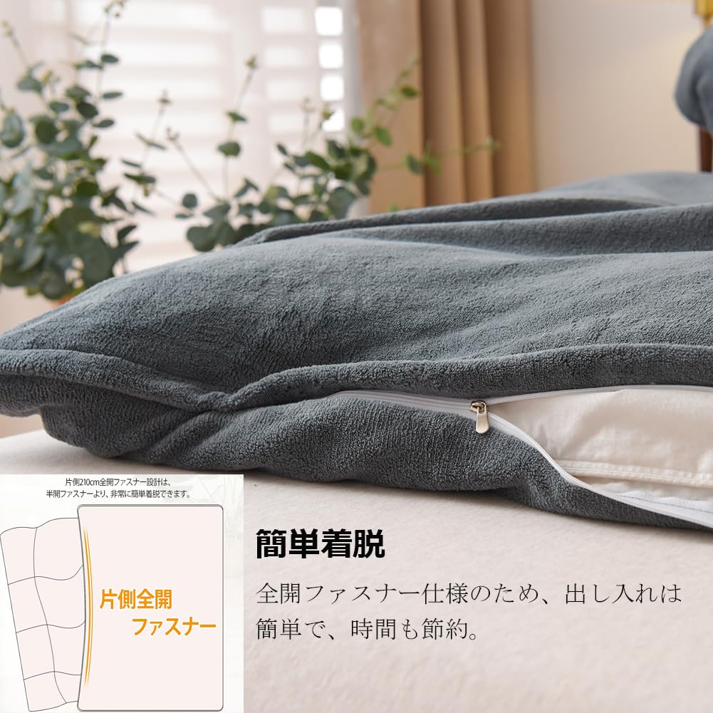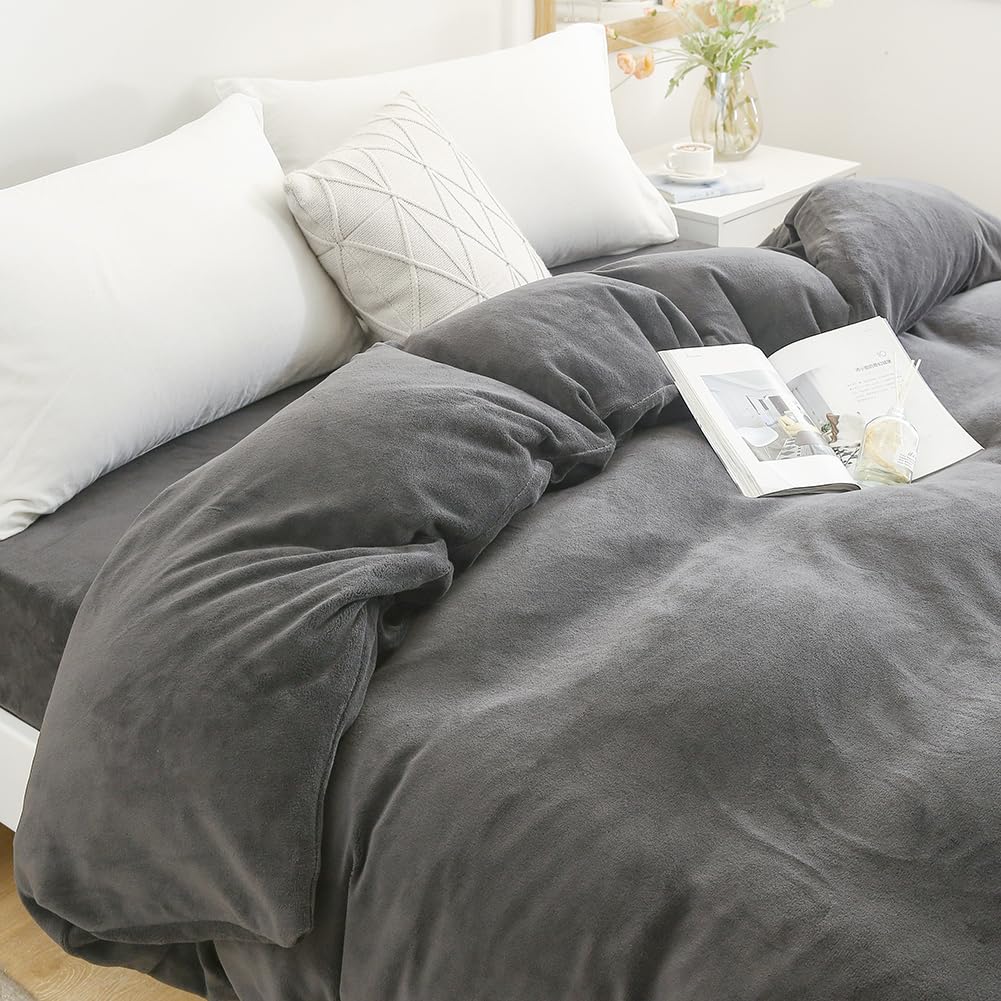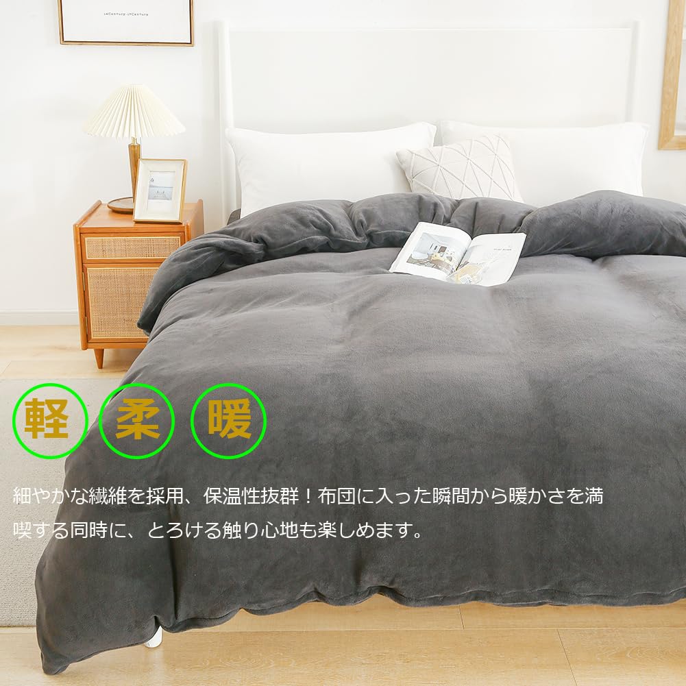 掛け布団カバー クイーン 冬 あったか 発熱 極細マイクロファイバー 静電気抑制 厚手 起毛 もこもこ 毛布カバー 全開ファスナー ヒモ8ヶ所付 羽毛布団カバー 通気速乾 ふわふわ 柔らかい 冬用ふとんカバー 毛抜けにくい フランネル 抗菌防ダニ(210*210cm, グレー)