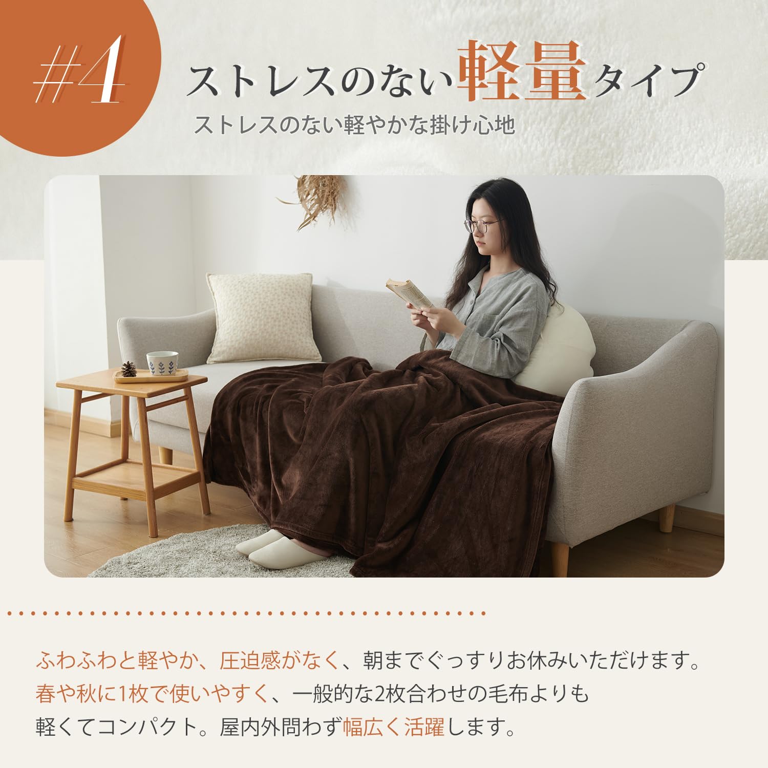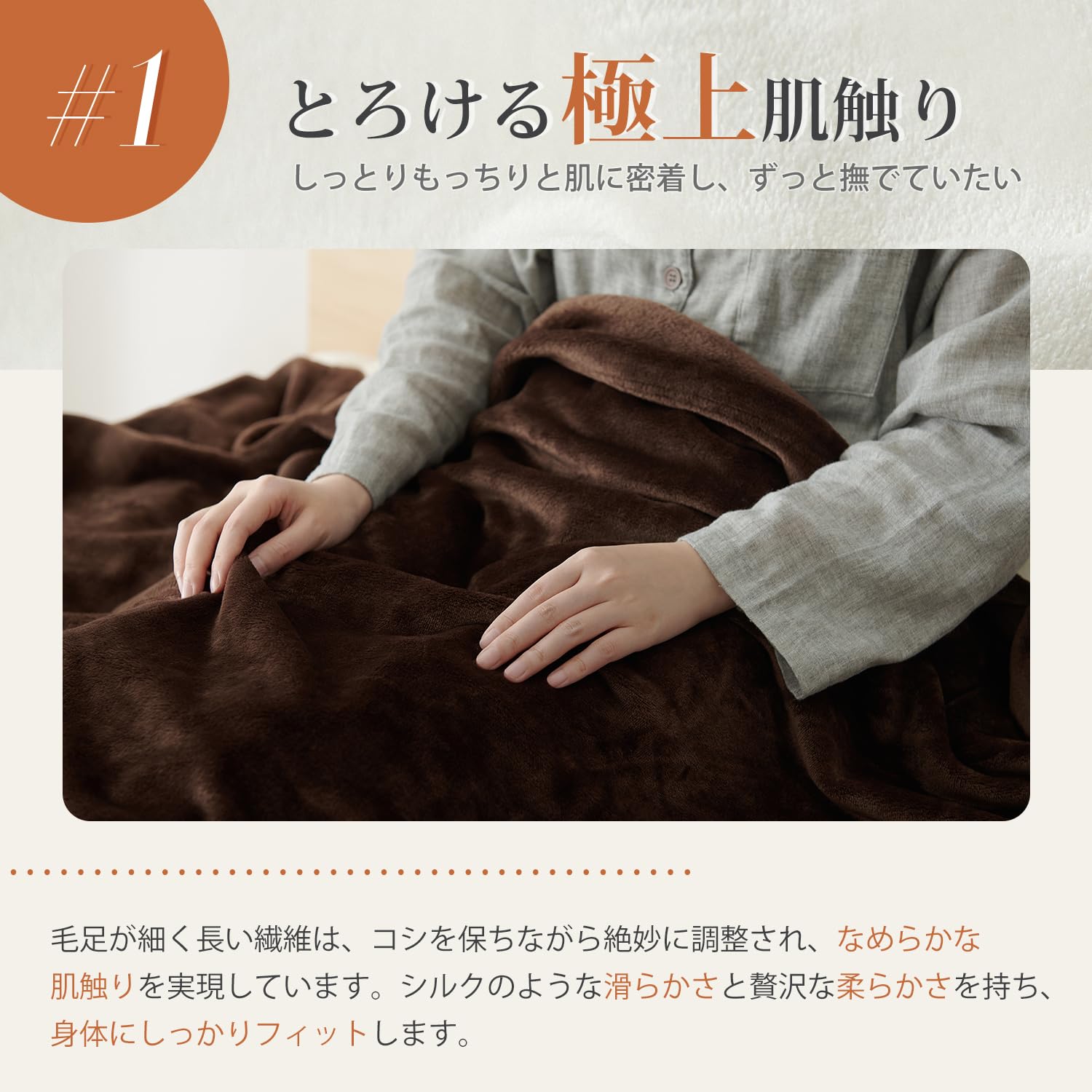 <ふんわりなめらかな極上の肌触り>:顔周りなど肌に直接触れる毛布の肌触りは非常に重要です。この毛布は驚くほどなめらかで心地よく、ふわりと柔らかく体を包み込む心地よさは、一度知ると手放せなくなります。毛玉ができにくい素材を使用しており、極上のプレミアムな感触が長く続きます。