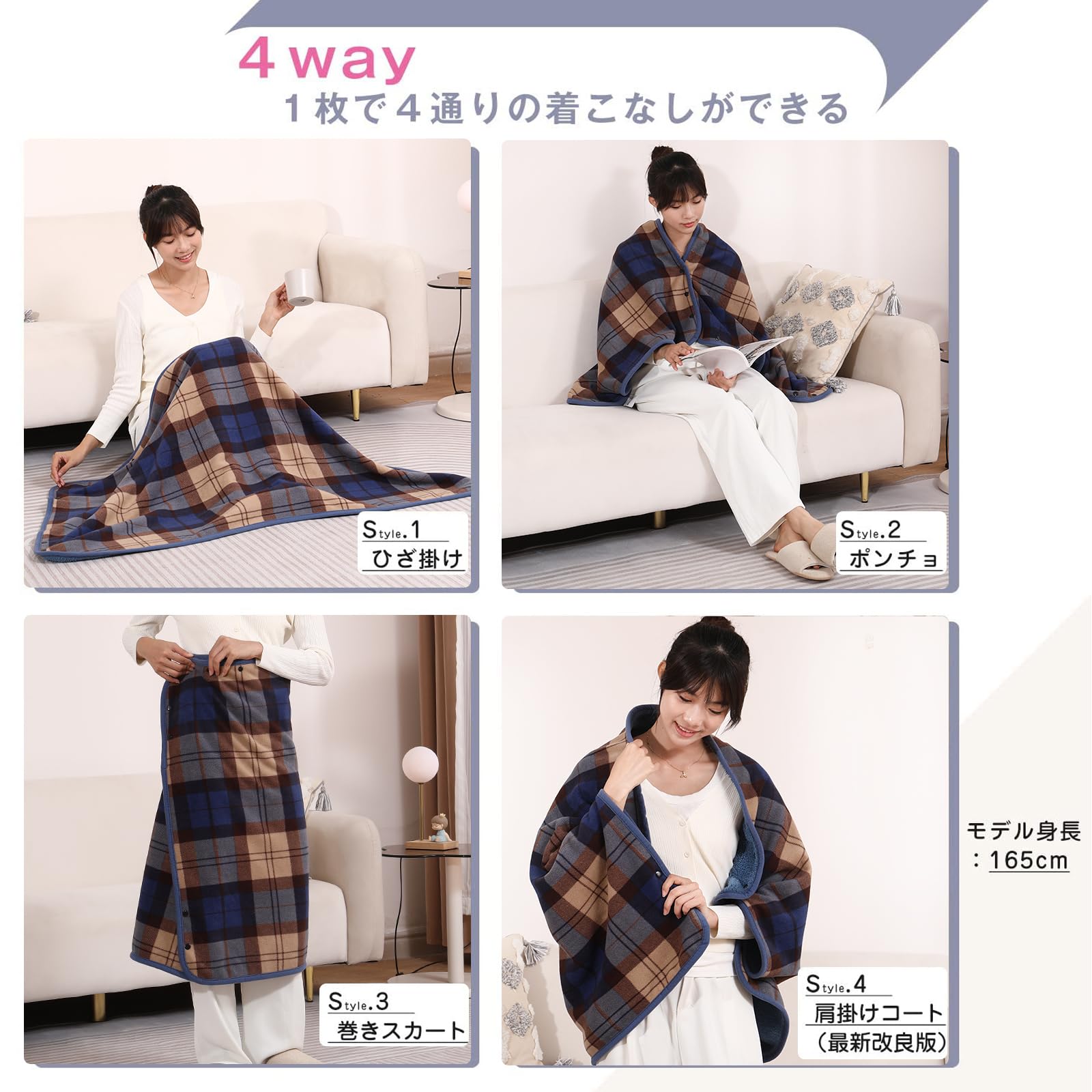 HAPGO ひざ掛け ブランケット 大判 選べる5色2サイズ 80×135cm 4way 着る毛布 ボタン付き 改良 防寒対策 あったか チェック柄 吸湿保温 抗菌加工 静電気防止 洗濯可能 手触り 家・オフィス・アウトドア・車・出張 などに適用 通年使用 (Mサイズ(80×135CM), ブルー)