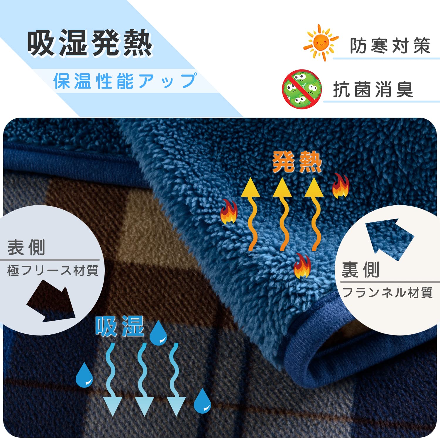 【機能性】吸湿保温、静電気防止、ニキビダニ防止、抗菌防臭を加工して、毎日安心してお使いいただけます。暖かいのに毛布より軽くて、持ち運びやお出かけにも便利です。