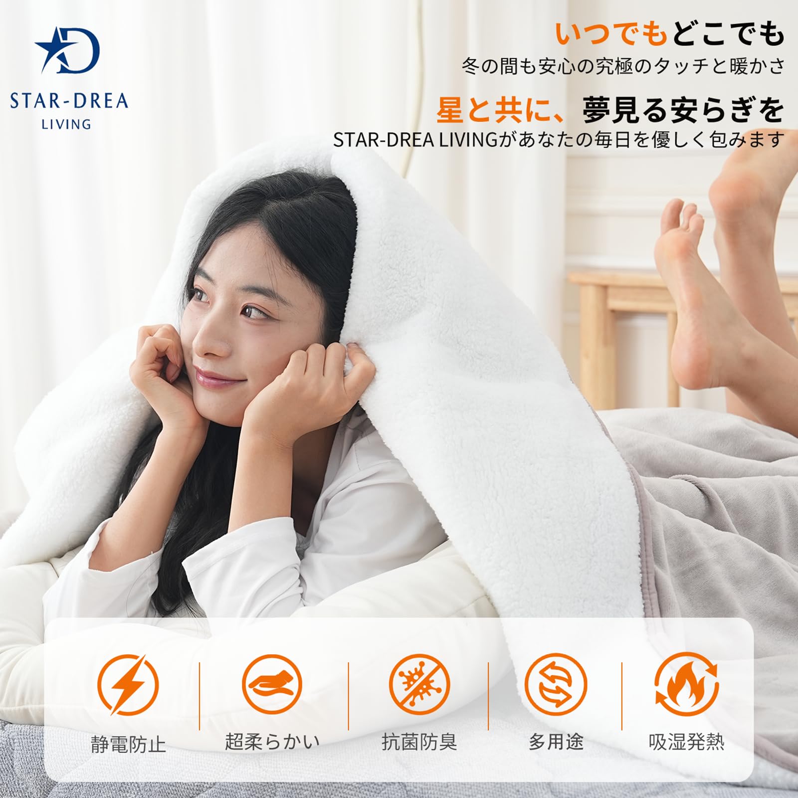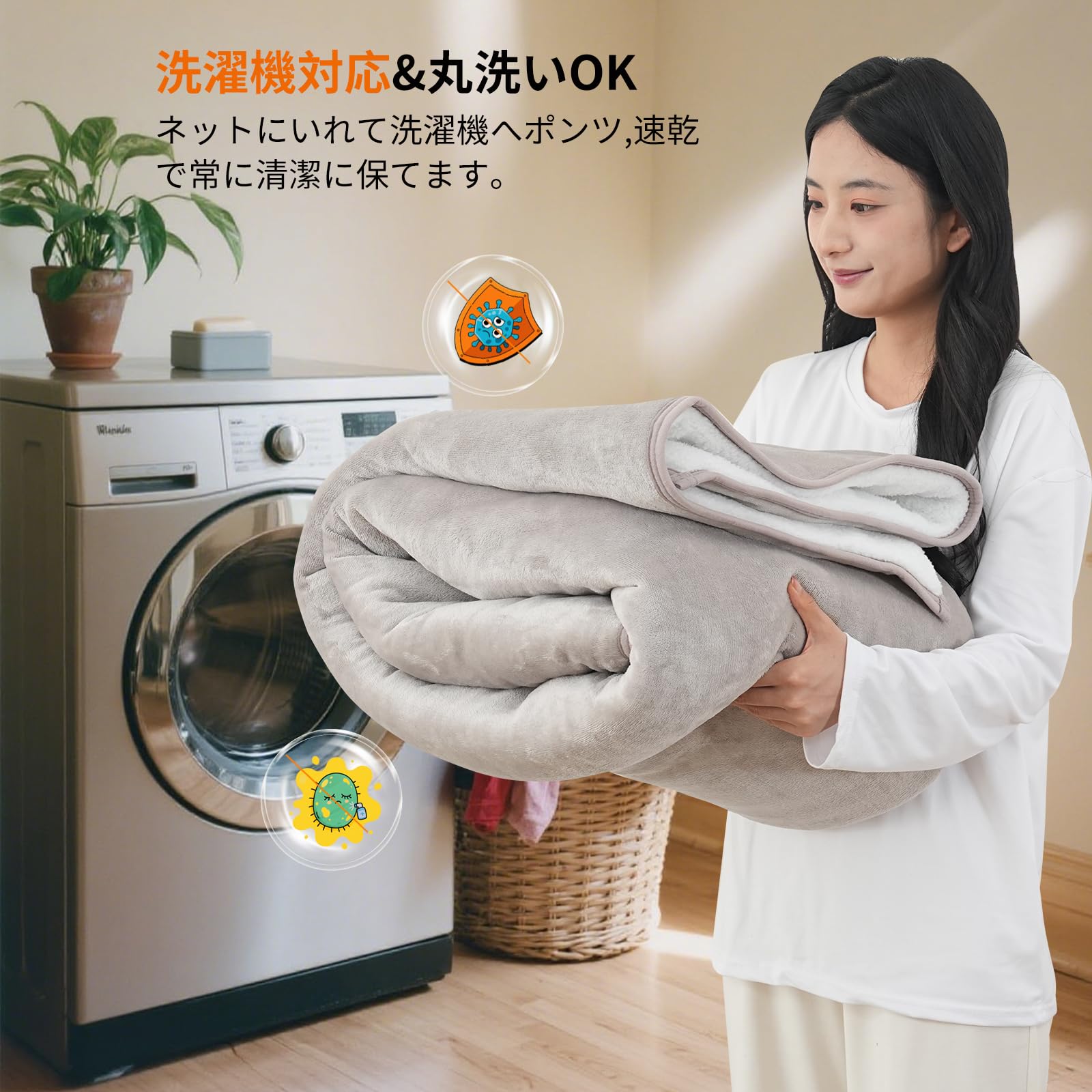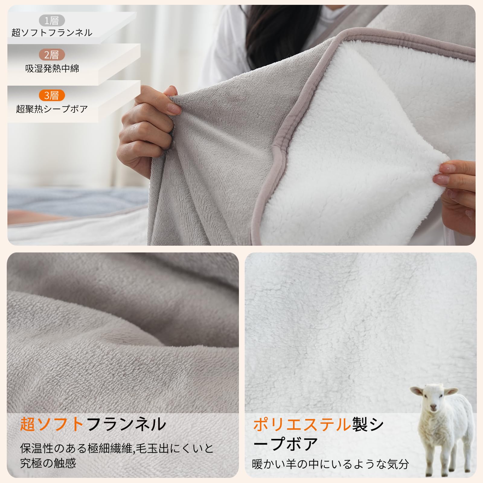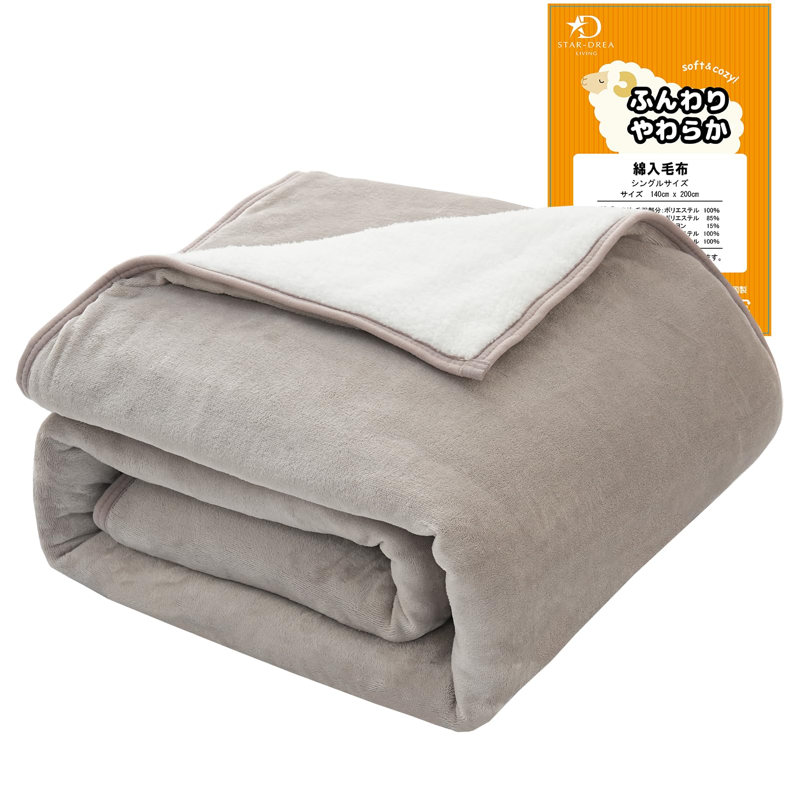 毛布 シングル 羊毛毛布 綿入毛毯 厚手 秋 冬 暖かい シ-プボア+超ソフトフランネル 多用 極上の肌触 静電防止 吸湿発熱 抗菌防臭 掛け毛毯 洗える 140X200CM グレー