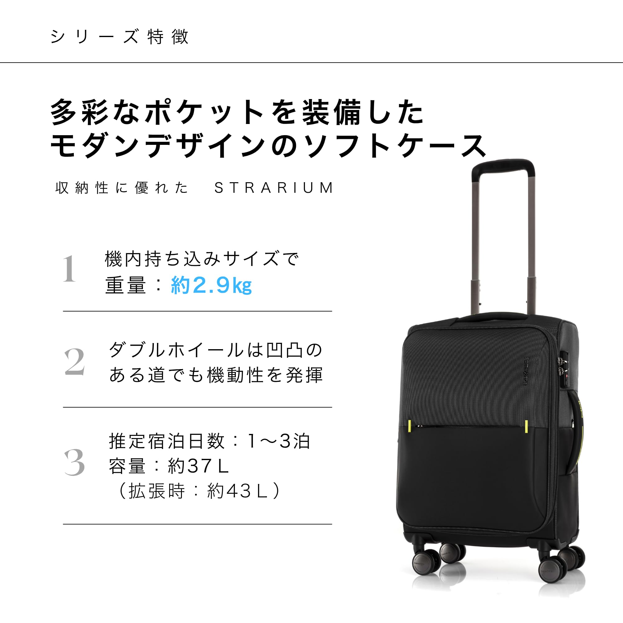 [サムソナイト] スーツケース キャリーケース ストラリウム STRARIUM スピナー エキスパンダブル サイズ:高さ55cm×幅37cm×マチ25/29cm(4cm拡張可) 容量: 36L 重量:2.9 kg 機内持込み可 3辺合計 117cm (無料預入受託サイズ 3辺合計158cm未満) 検品のために商品の箱を開封することがありますので予めご了承下さい。