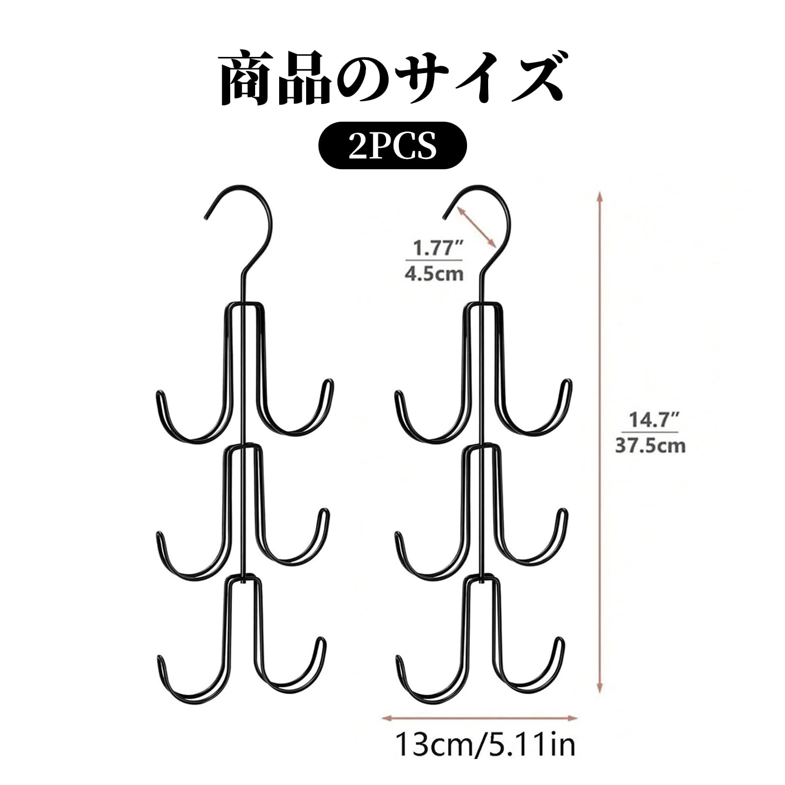 バッグ収納ラック【2個セット】回転フック 360度回転式 バッグホルダー バッグハンガー フック クローゼット 小物収納 帽子 吊り下げラック衣類掛け 玄関ハンガー 衣類収納ラック
