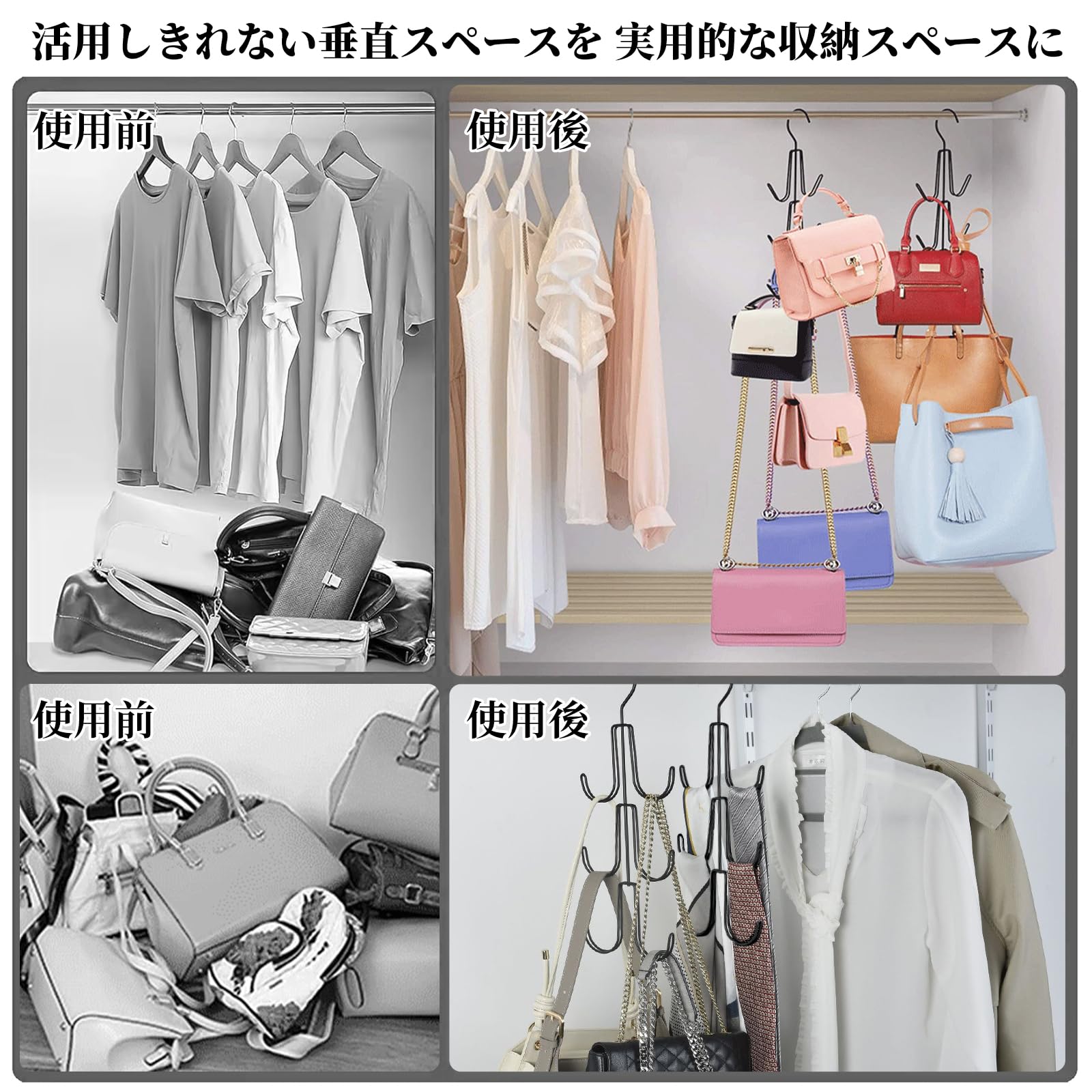 【タンス収納袋】このフックには6つのフックがあり、長肩ベルトや短さ、幅、狭さなど、財布を最低6つ、または複数の形状とサイズの袋を収納することができます。このフックはクローゼットをきれいにして、ハンドバッグを見つけやすいです。