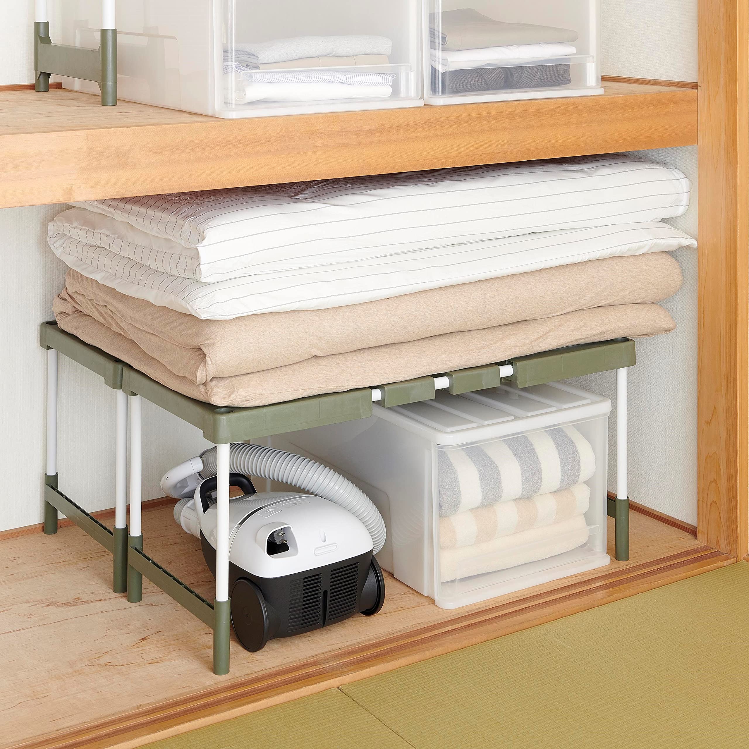 Belca 日本製 収納棚 クローゼット・押入れフリーラック 伸縮タイプ 2台入り 幅76.5~92×奥行37×高さ35・40cm エコグリーン CO-RG2