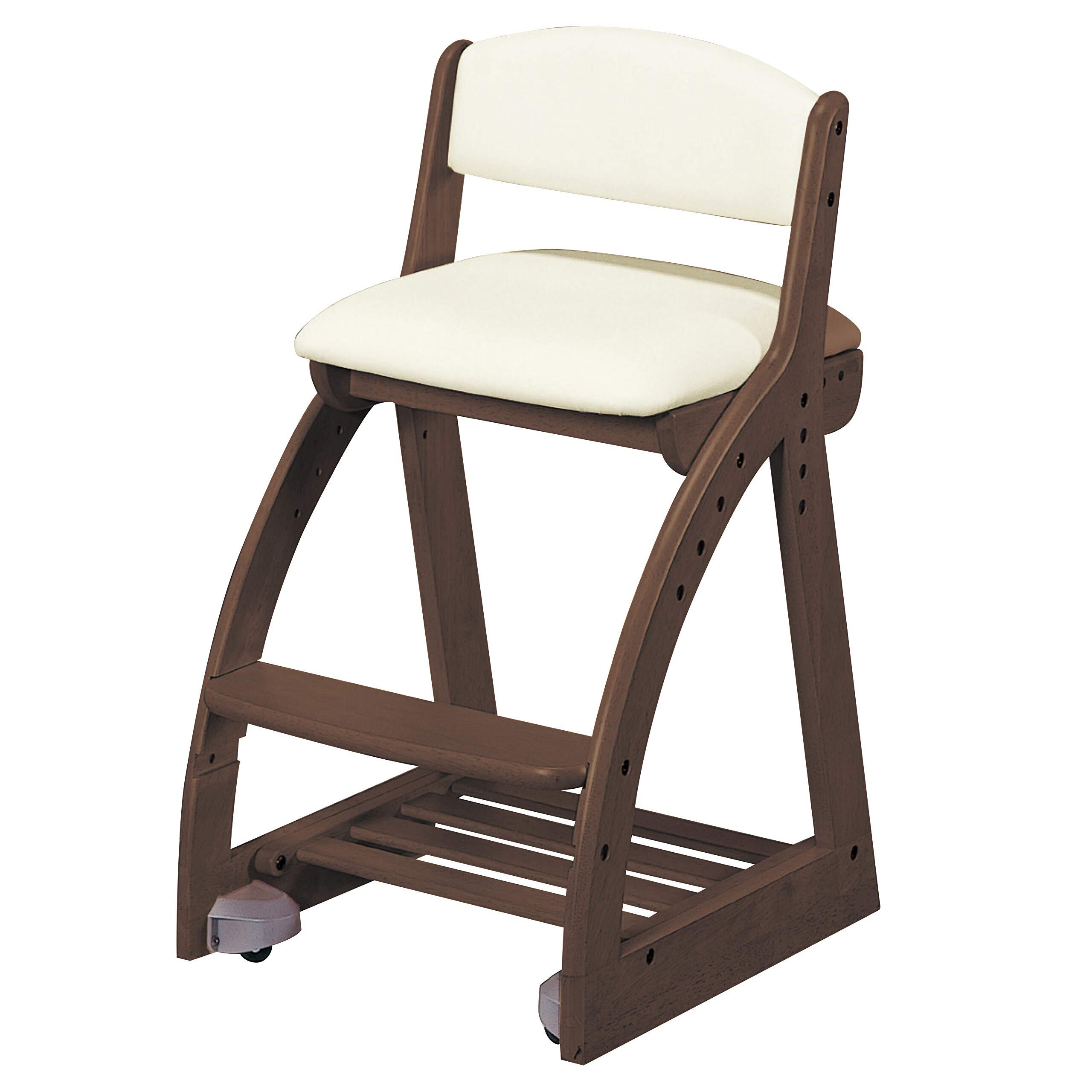 KOIZUMI(コイズミ) 4STEP Chair FDC-057 WT IV フォーステップ チェア PVCレザー 木製 椅子 レザー調 ウォルナット ダーク ブラウン アイボリー ベージュ 茶 白 学習 勉強 サイズ:W413×D490〜545×H750mm SH440・470・500・530mm(外寸) FDC057WTIV
