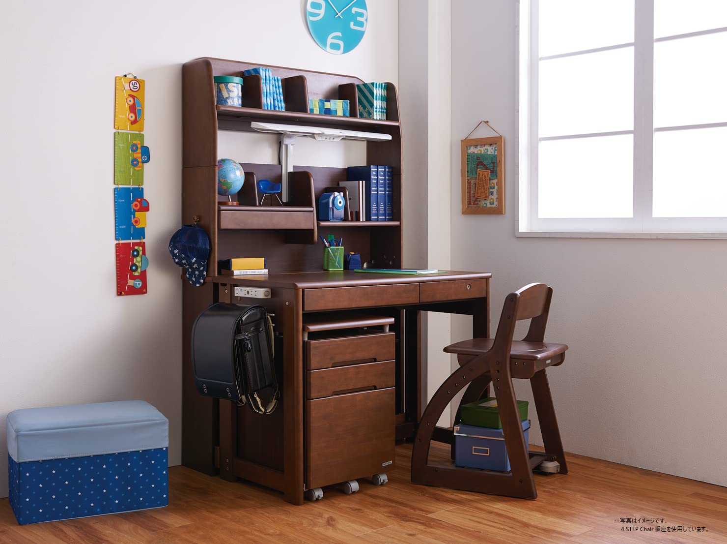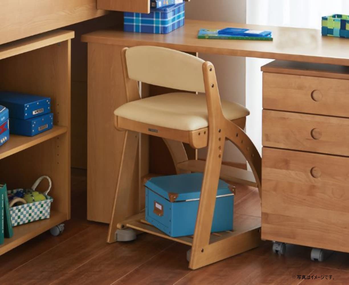 【4STEPチェア】成長に合わせて永く使えるチェアシリーズ。座面に角度をつけているので、前かがみになるのを防ぎます。