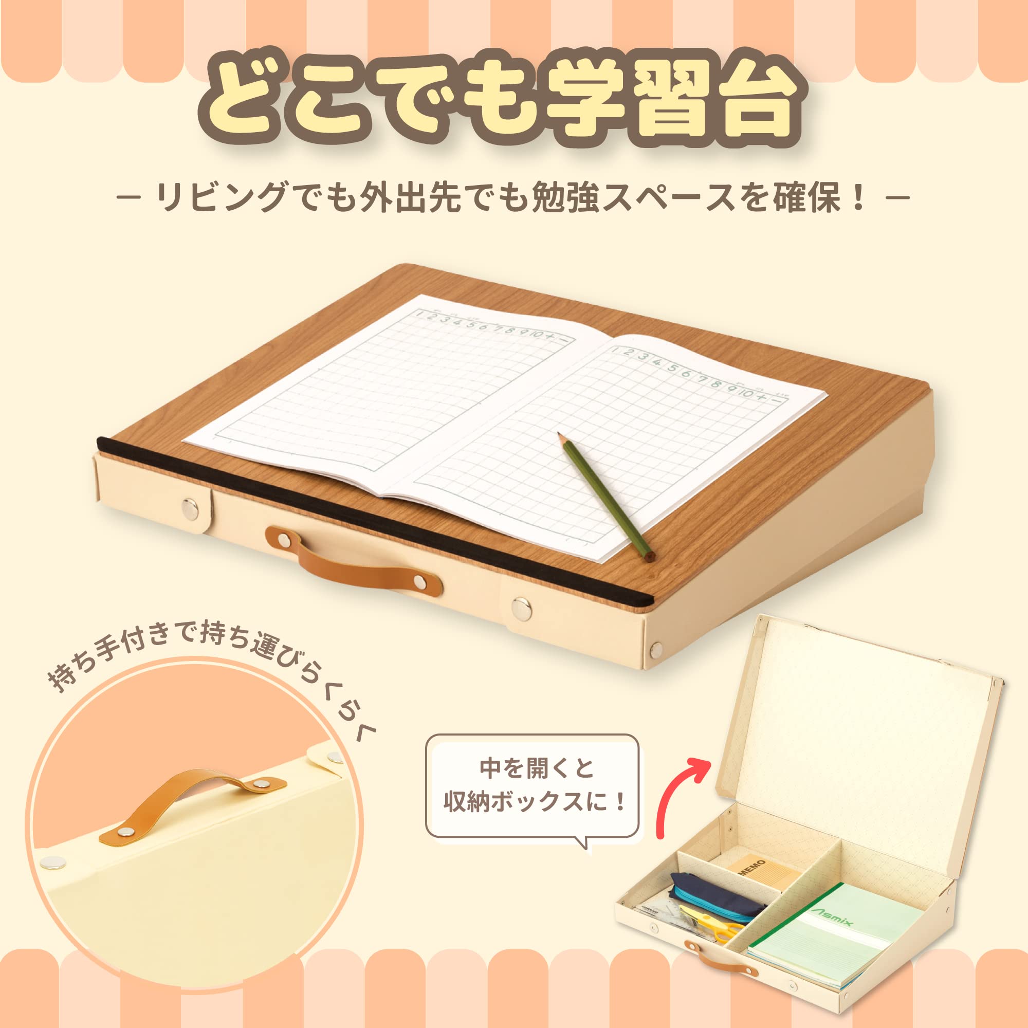 【文房具ソムリエがTVで紹介し話題!】どこでも学習台 収納スペース付き。勉強だけでなくお絵描きや読書などでもご使用いただけます。