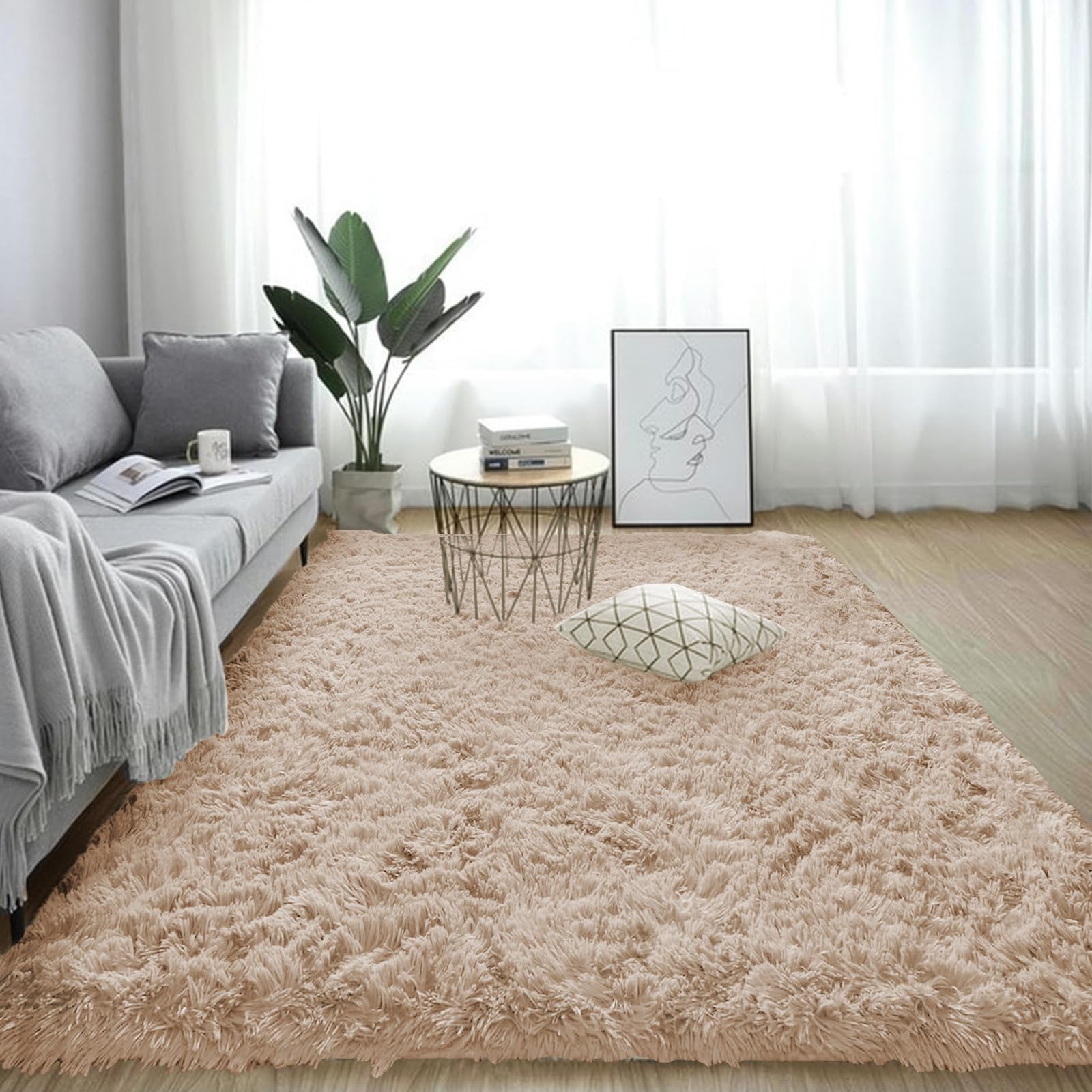 ラグマット カーペット おしゃれな北欧風シャギーラグ 全厚約5cm 洗えるラグ 滑り止め付き 極厚毛足約4cm ふわっとした手触り 防音絨毯 オールシーズン快適に使用 長方形 ROCYJULIN(200x250cm ライトキャメル)