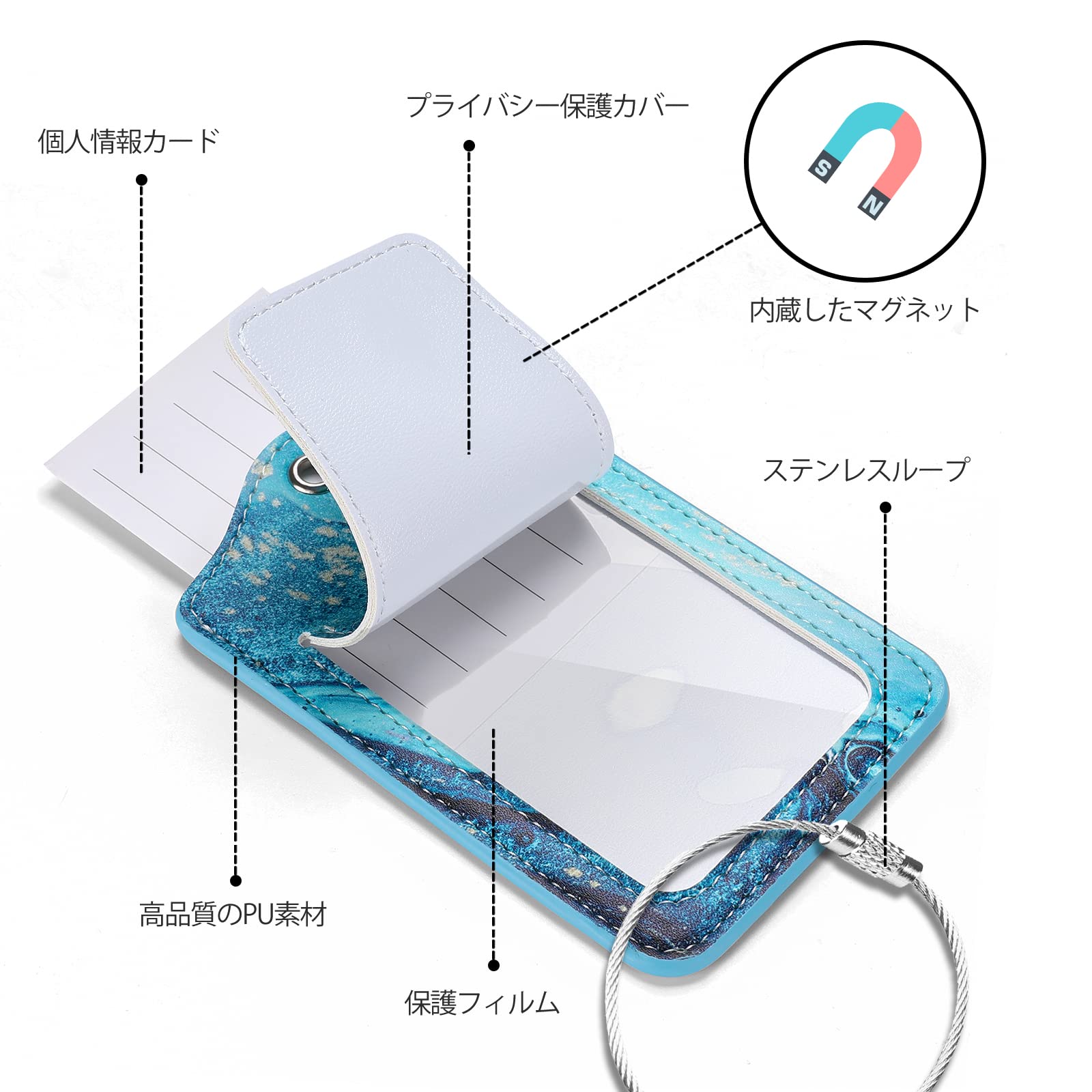 JOTO ネームタグ 2個入 荷物タグ スーツケースタグ 出張用タグ 紛失防止 旅行手荷物 ラベル オーシャンブルー