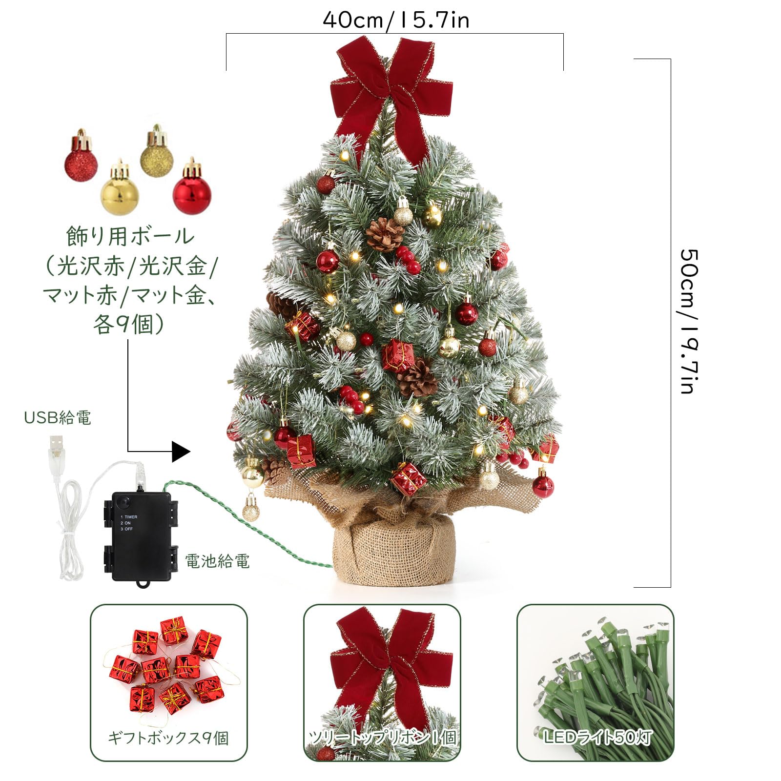 クリスマスツリー 卓上 ミニ Luxspire 50cm DIY可能 人工松 タイマー機能 電池式 USB給電式 2ways給電 LEDイルミネーションライト 人工 クリスマスつりー 小さめ クリスマス雑貨 デスクライト インテリア プレゼント 雰囲気 デコレーション おしゃれ ミニクリスマスツリー 40*40*50cm