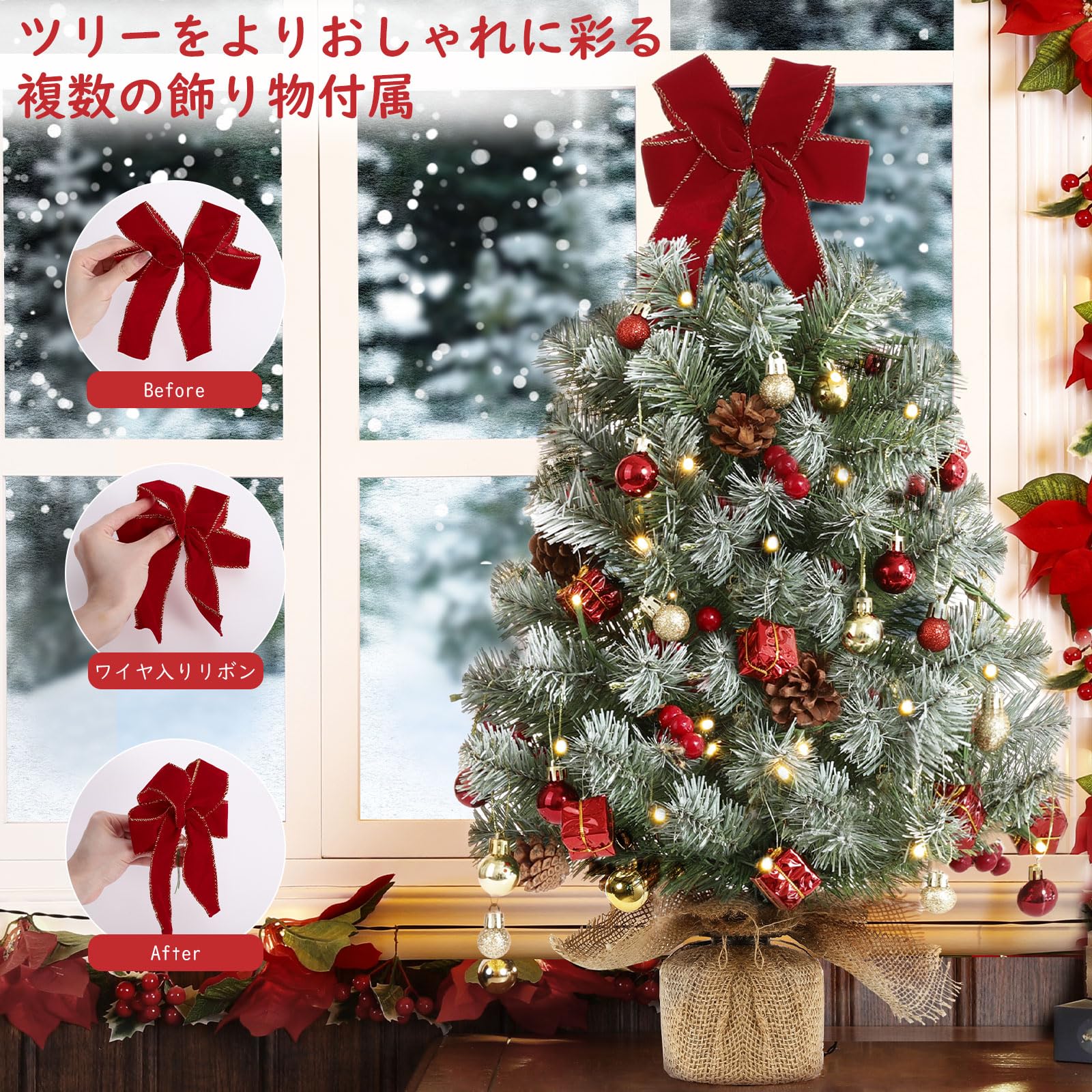 「DIY可能:お好きに飾る」 パッケージの中には、樹体において、デコレーションとしての赤色ボール(光沢・マット各9個)、金色ボール(光沢・マット各9個)、ギフトボックス9個、リボン1個とイルミネーションライトが置いております。また、自分の想像力を自由自在に発揮して、お好きにほかのデコレーションを追加し、自分特定のクリスマス ツリーを作りましょう。