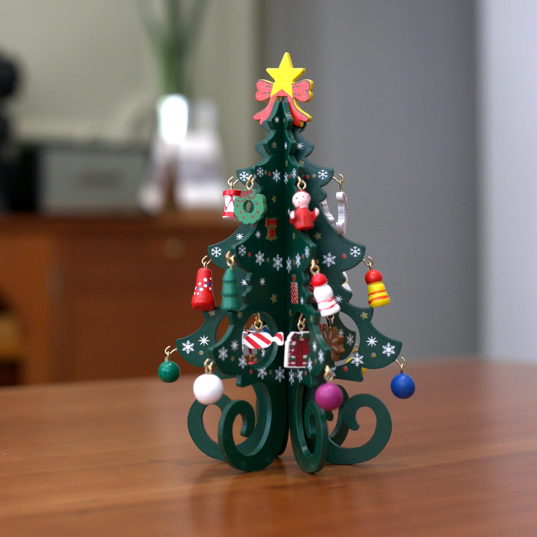 クリスマスツリー飾り、グリーンツリーにカラフルな飾り付き (グリーン)