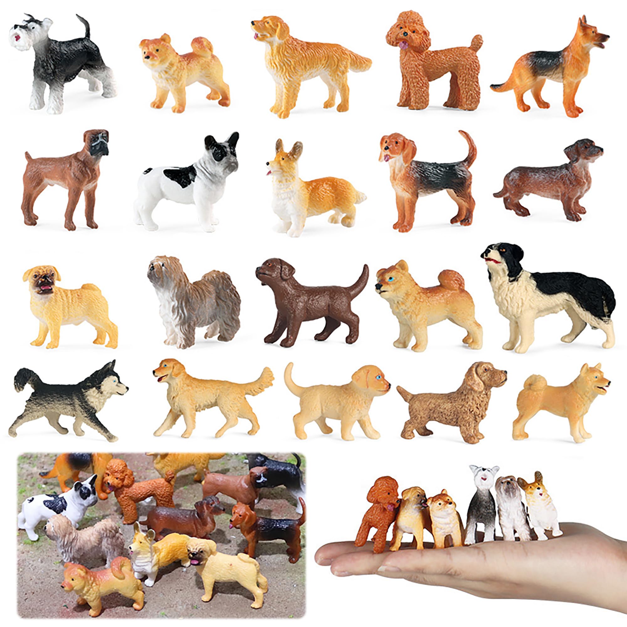AAGWW リアルな動物 ペットの犬 動物の模型 ミニチュア動物 モデル おもちゃ 飾り物 牧羊犬 ギフト(製品の内容:ペットの犬のモデル20個セット)