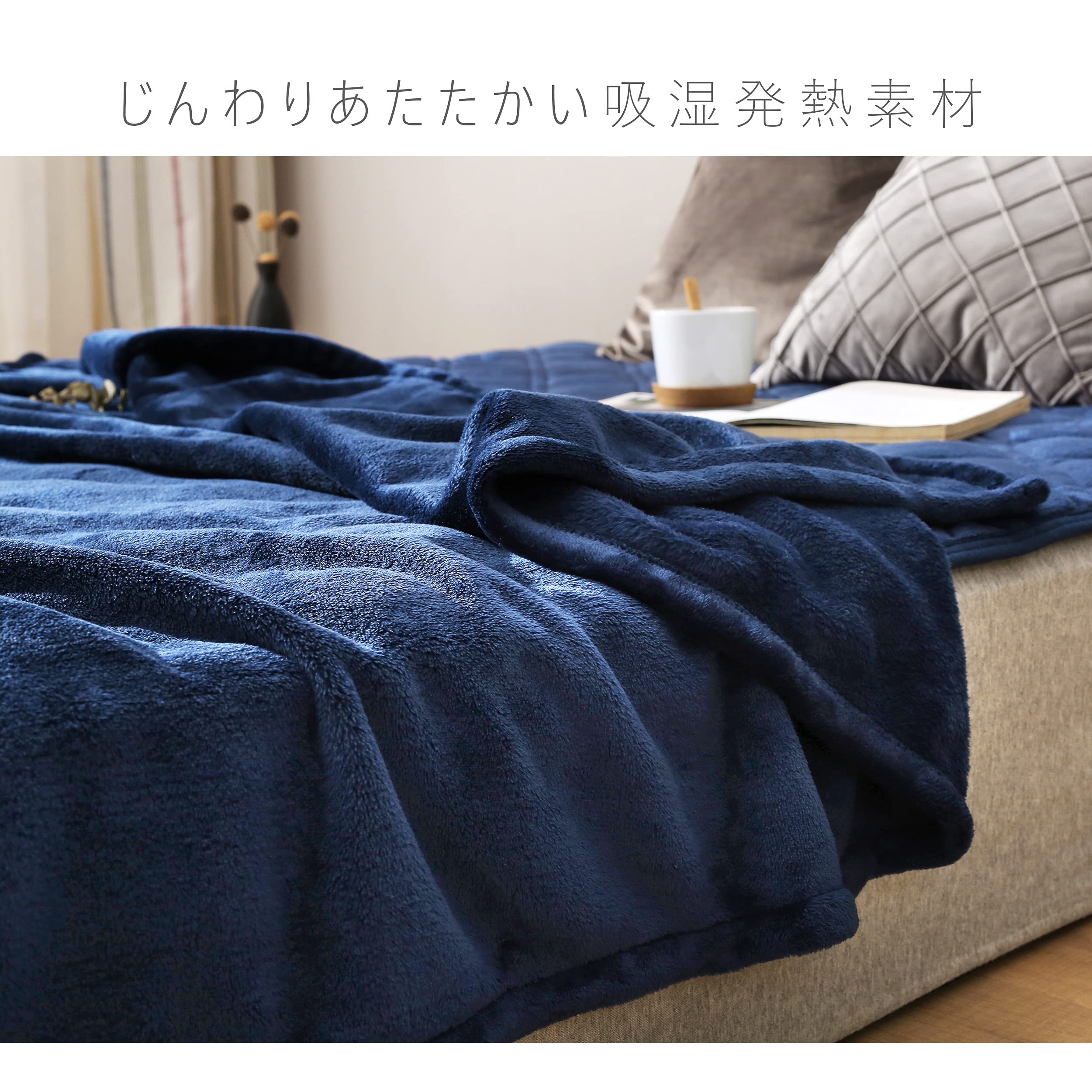 あったか毛布 軽量 もうふ ブランケット 冷房対策 春夏用 オールシーズン 洗える 暖かい ふんわり なめらか 吸湿発熱 マイクロファイバー 柔らかい 静電気防止 シングル ネイビー