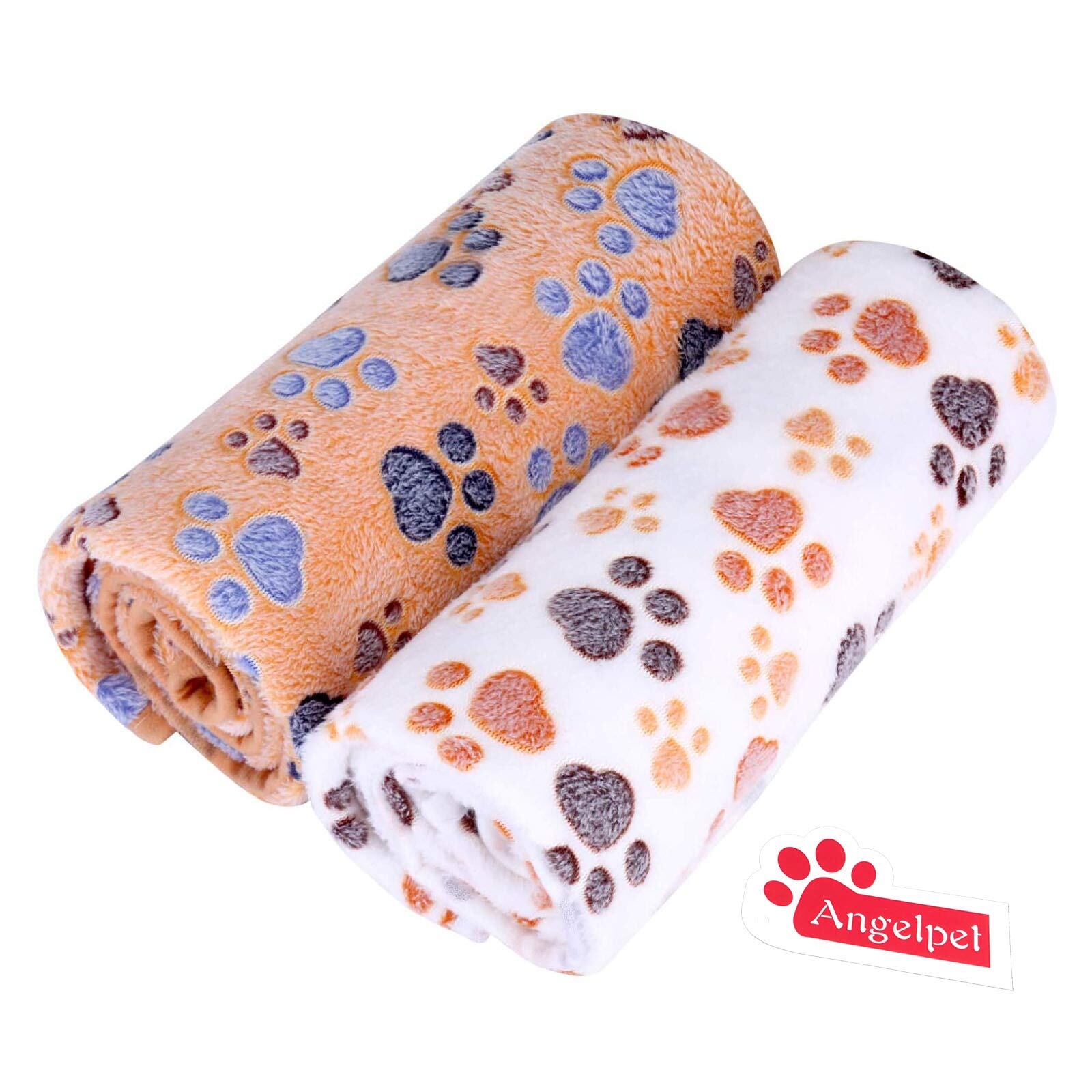 ペット用 ブランケット 毛布 犬猫 マット タオル ソフト 秋冬の防寒 保温 洗える サンゴフリース 可愛い肉球柄 Angelpet (L,2枚セット)
