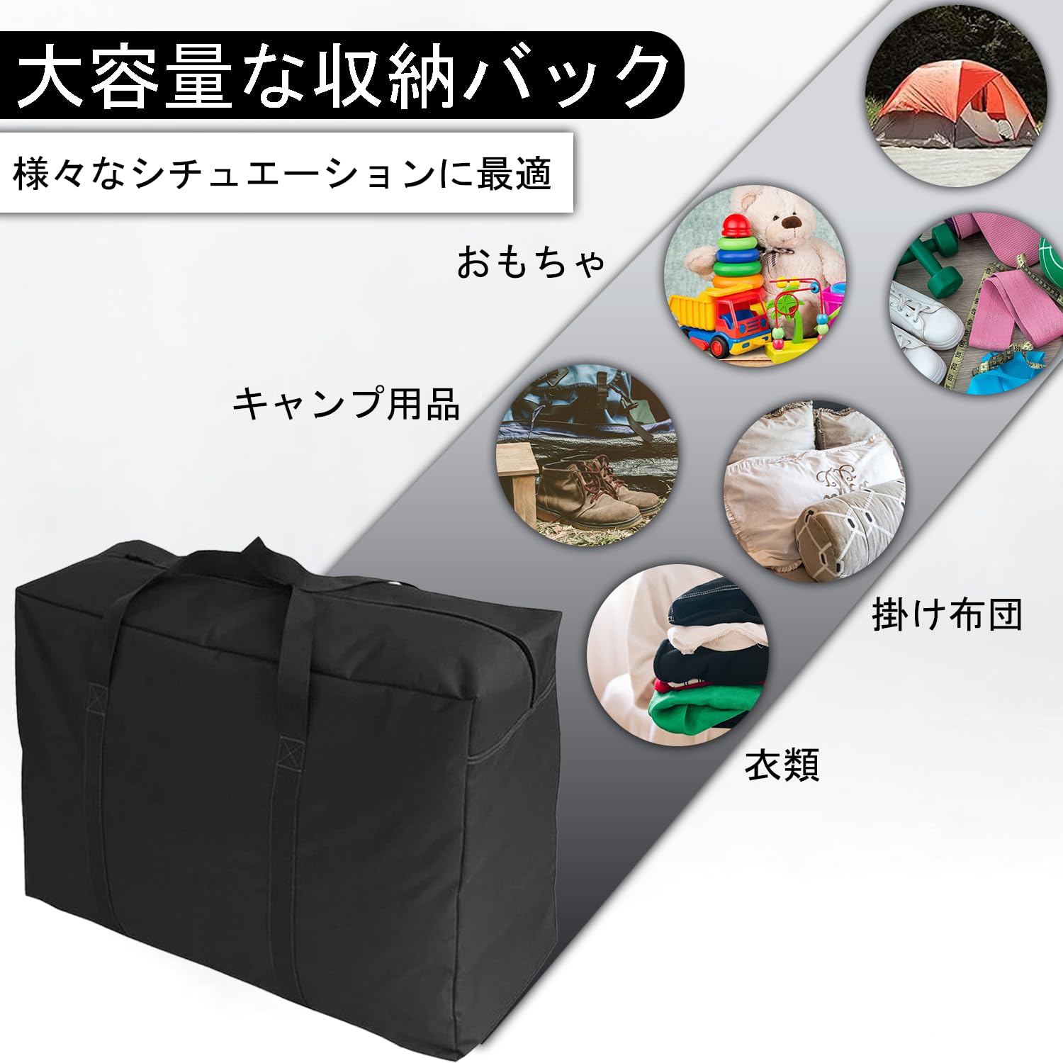 【新着特価】布団収納袋 大容量 折りたたみ 収納袋 防水 牛津布製 ダブルファスナー 衣類・布団・引越し用 ブラック (181L-100x55x33cm)