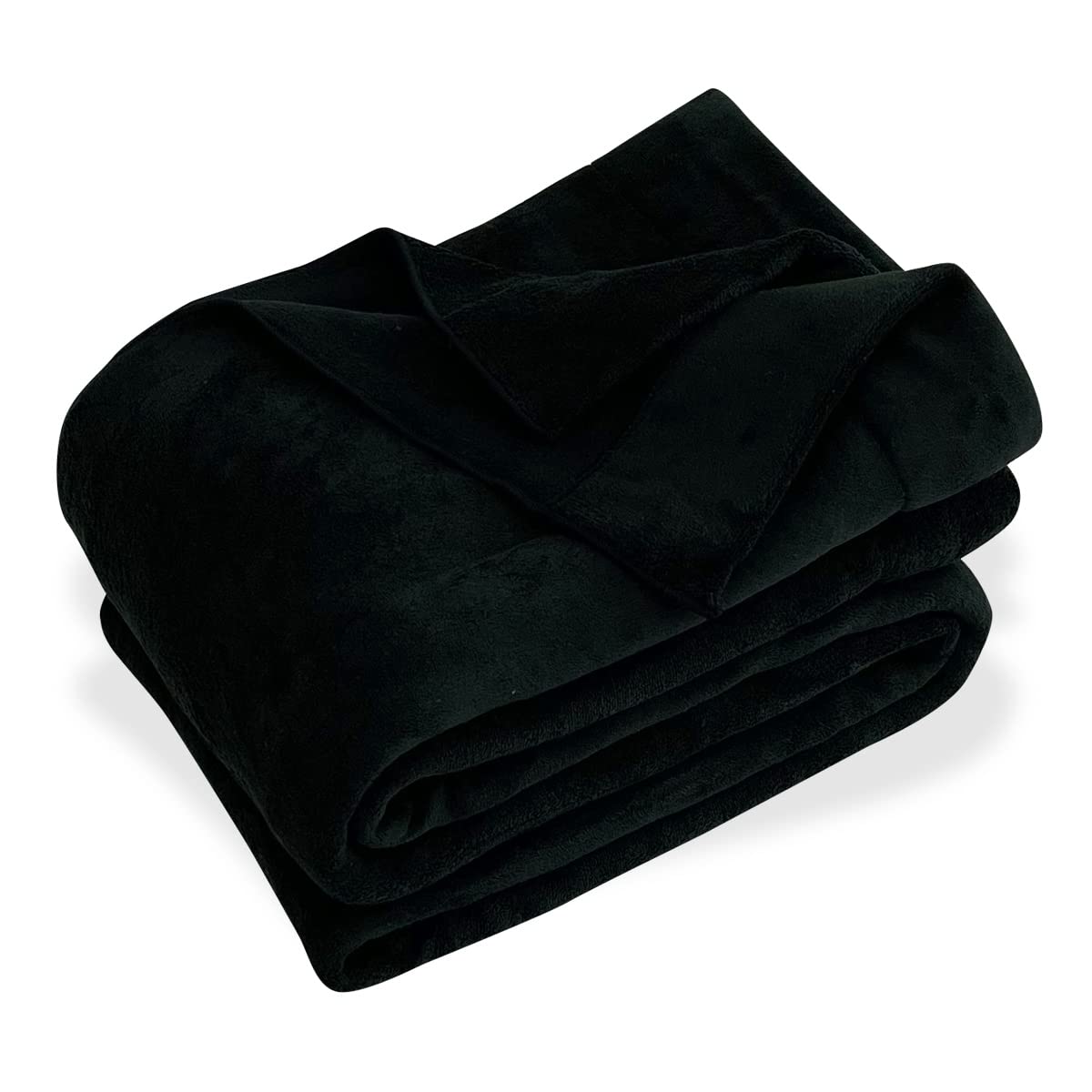 リヴェール ブランケット タオルケット ダブル 180×200cm 吸水 速乾 マイクロファイバー オールシーズン 毛布 肌掛け 黒 (ブラック)