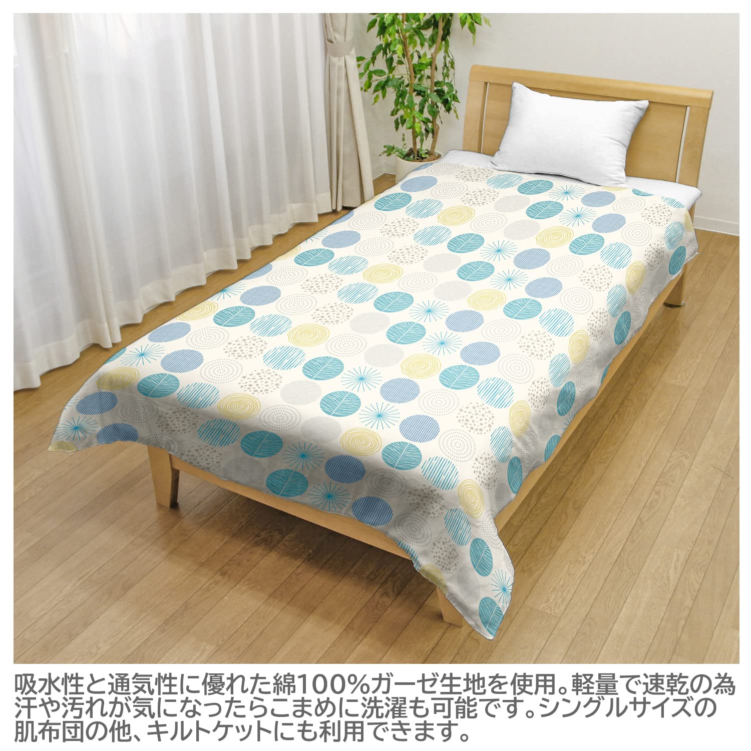 メリーナイト 肌布団カバー ガーゼ 「ナチュラルドット」 ブルー シングル 約140×190cm 綿100% ふんわりやさしい肌触り 吸水性 通気性 軽量 洗える 夏用寝具 CT14014-76