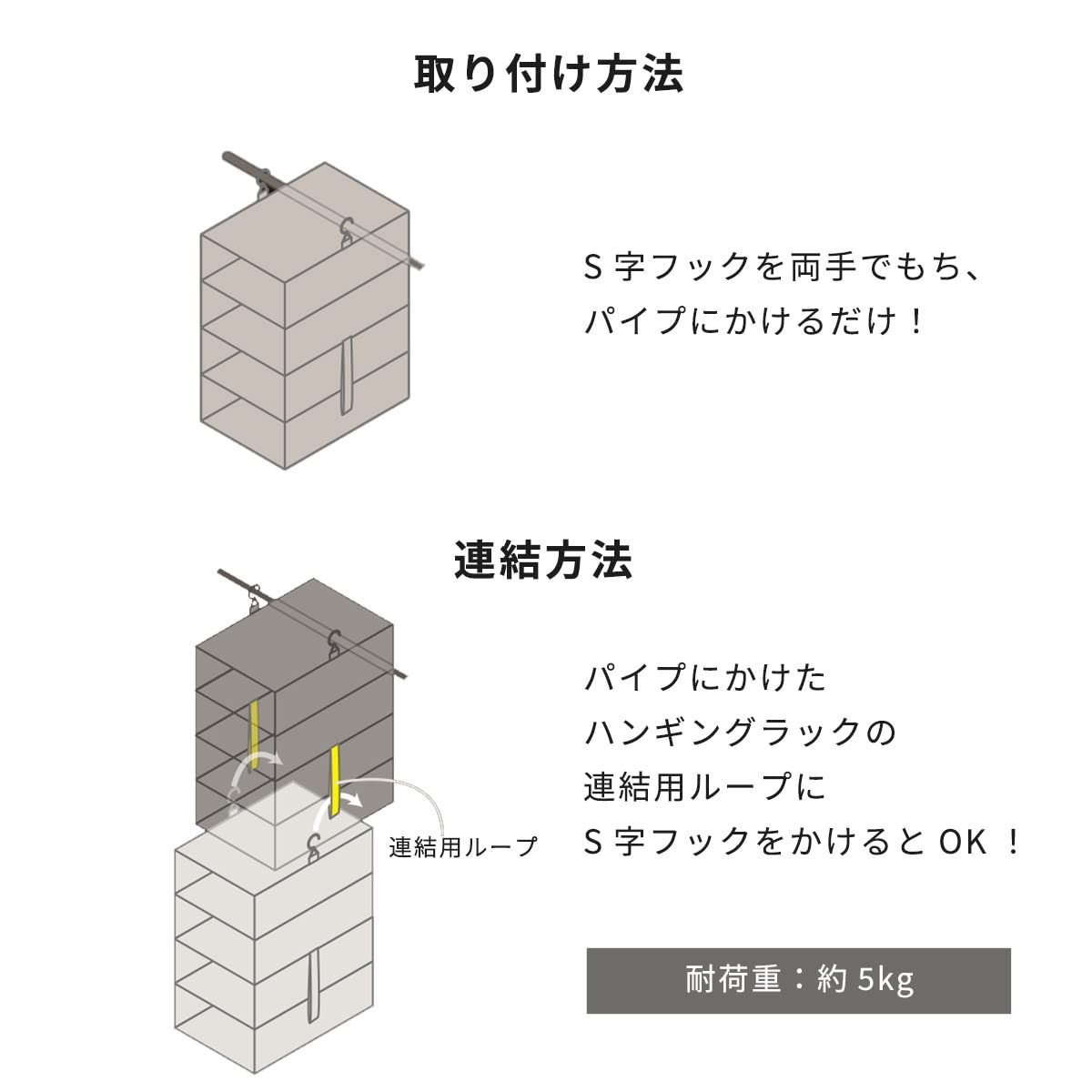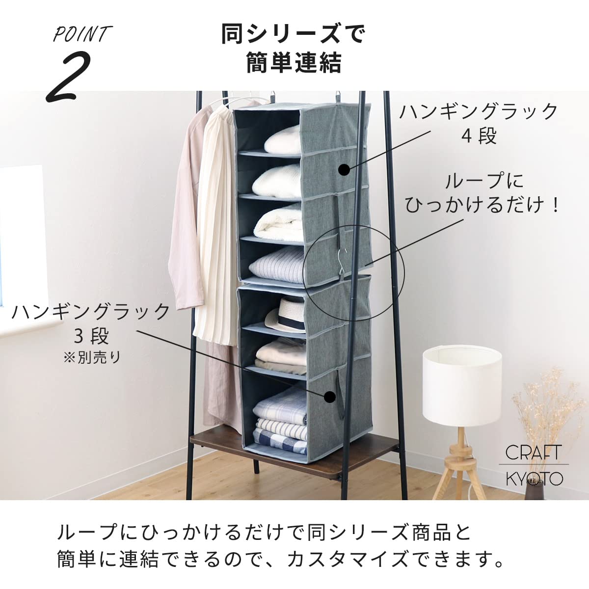 同じシリーズのハンギングラックシリーズを連結、組み合わせてお使いいただけます。