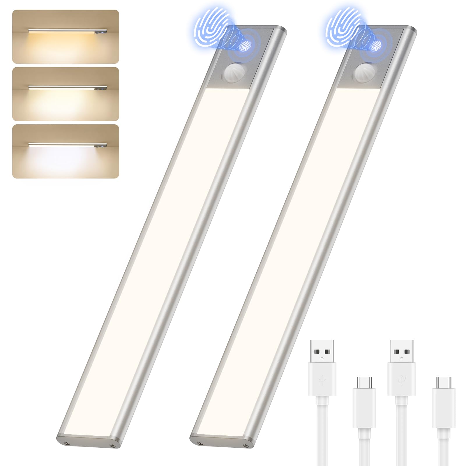 Quntis LED キャビネットライト 充電式 磁気/粘着取り付け 2個セット 30cm 人感センサーライト 室内 調光可能 USB-C充電 3000-6000K バーライト クローゼット、キッチン、階段用