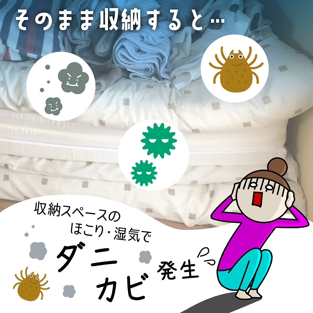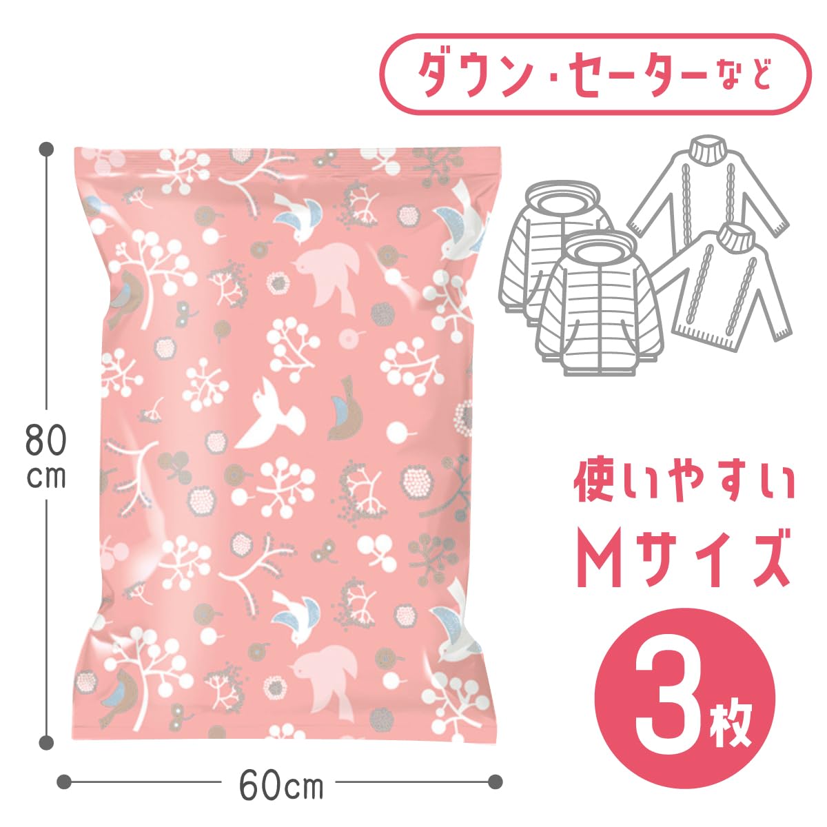 【防ダニ 防カビ 清潔保管】使いやすいMサイズ3枚パックでたっぷり収納できて衣替えや押入れの整理、クローゼットの整理に便利です。冬物のダウンジャケットや夏の肌掛け、大きめの衣類なども圧縮して清潔に収納できます。アレルギーの原因となるダニ、カビ、ホコリを防ぎます。