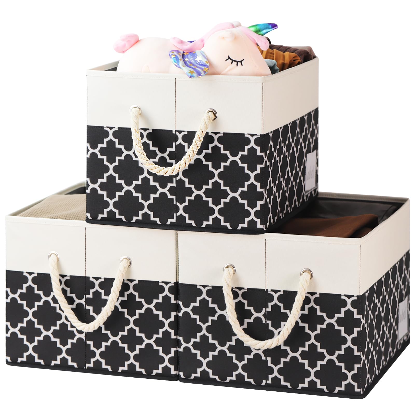 【頑丈な構造】収納バスケットはカチオン性素材の生地で作られており、臭いがなく、丈夫で、底部と側壁には段ボールが挿入されており、これらの収納ボックスを支え、立った状態に保ち、構造的完全性を保ち、収納ボックスの崩壊や変形を防ぐことができます。 。この頑丈な収納バスケットは、長期保管のニーズを満たします。