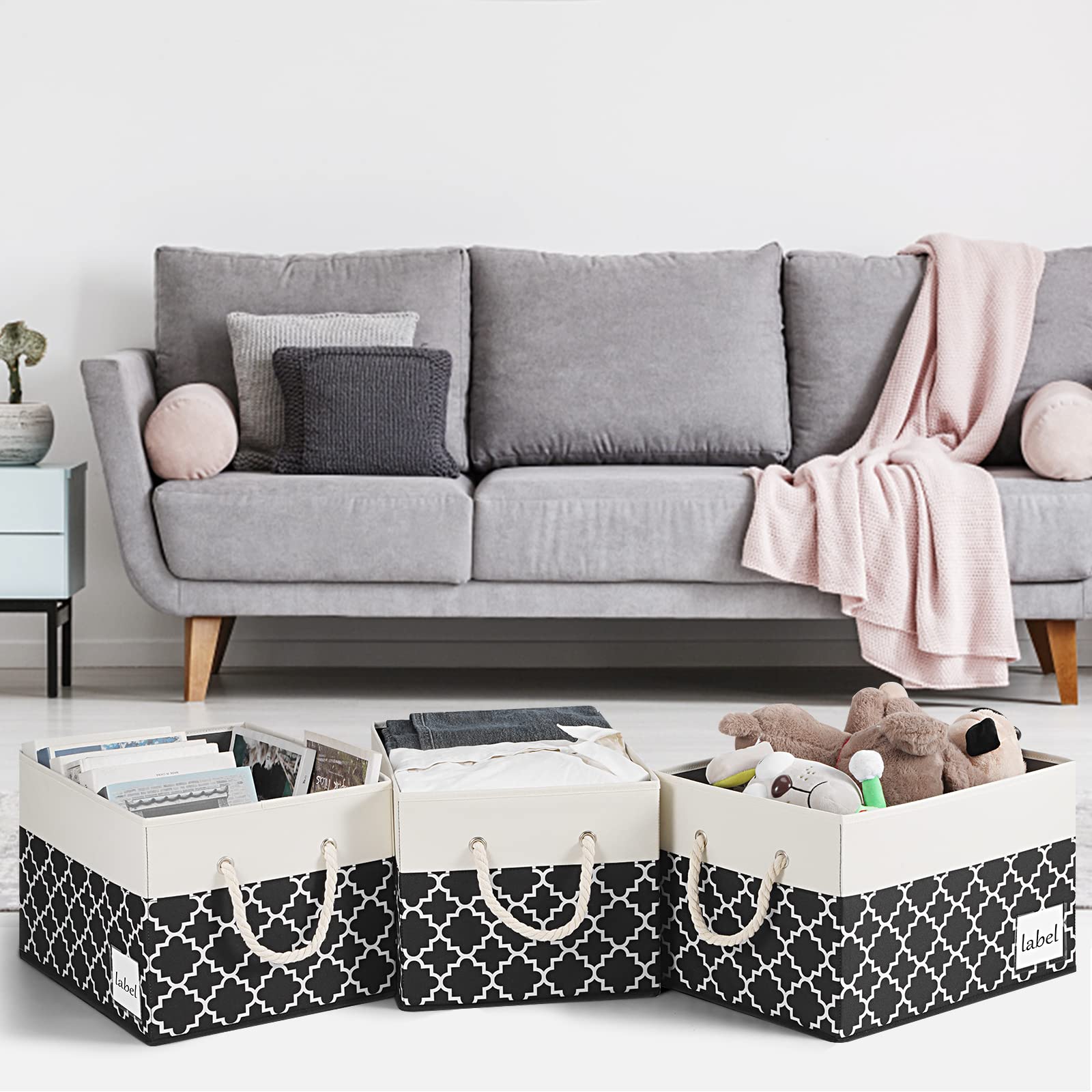 【努力特価】収納ボックス 3個セット 幅40×奥行30×高さ26cm 折り畳み 収納 ボックス 綿ロープハンドルと分類ラベル付き 収納ケース 押入れ収納 雑誌収納ケース 整理かご