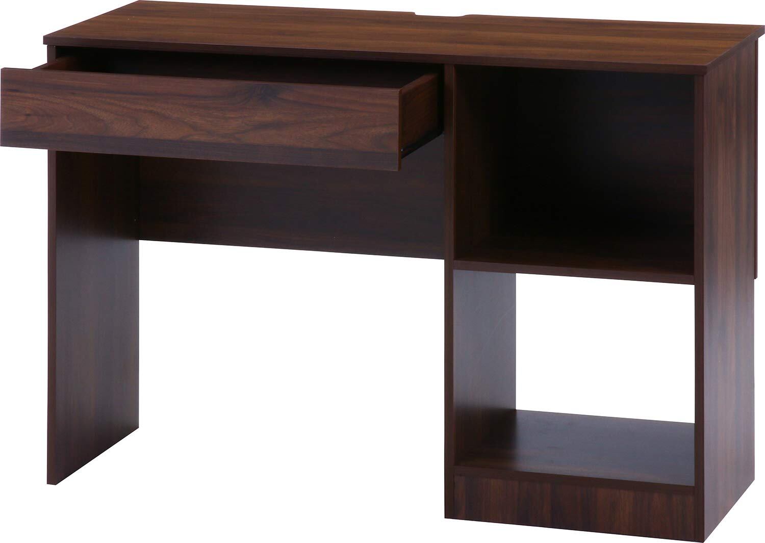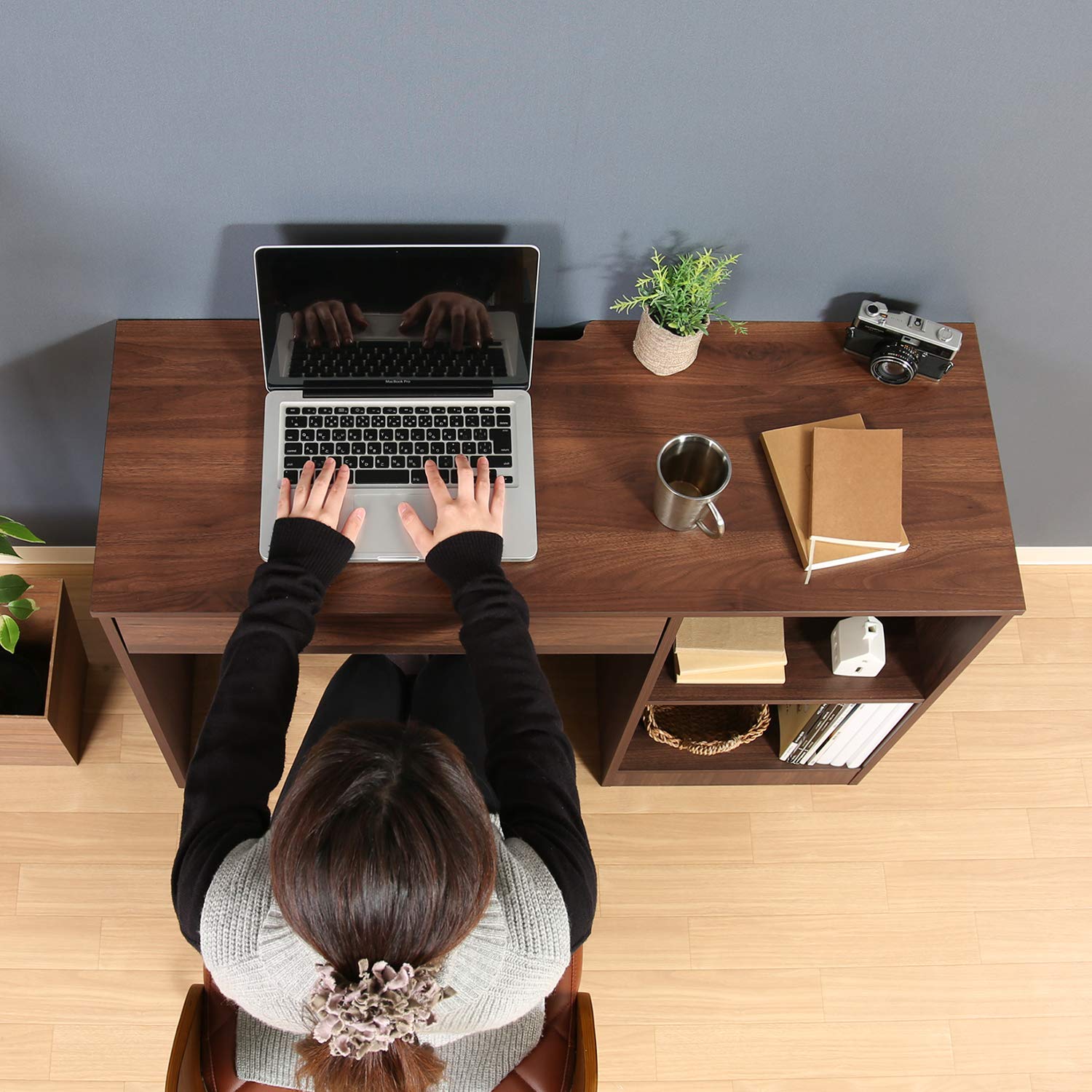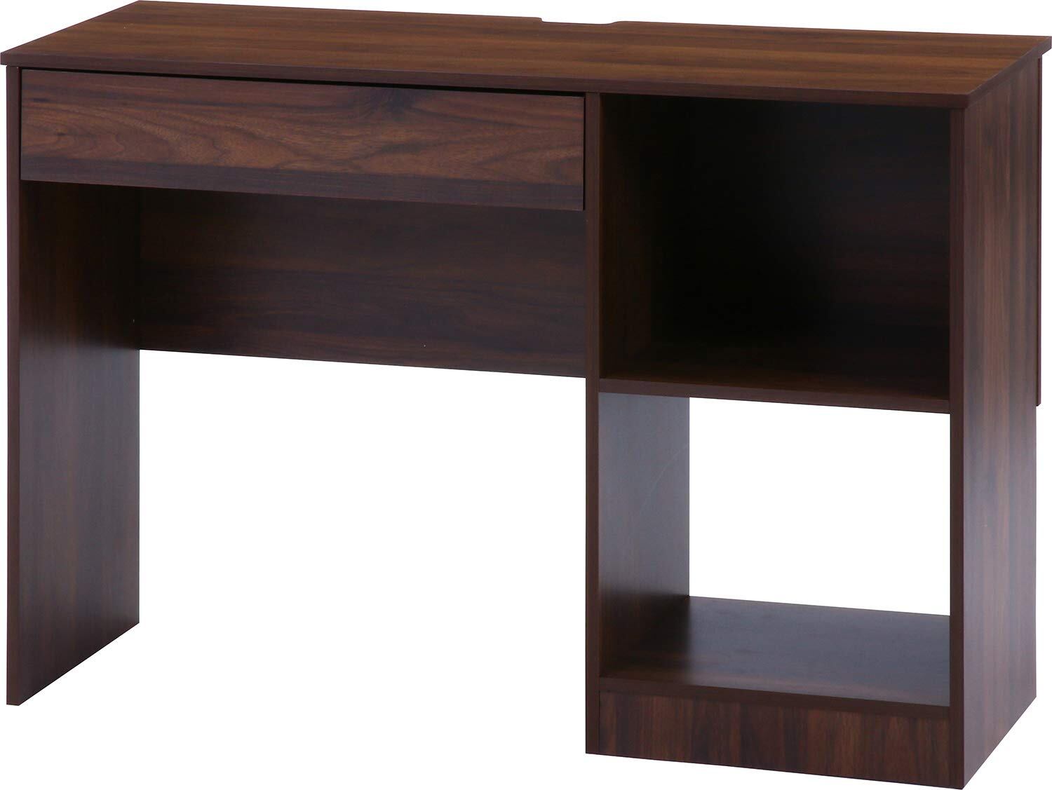不二貿易 ワークデスク 学習机 片袖 幅110cm ミディアムブラウン 収納 工具不要 木目調 アジャスター付き 99395