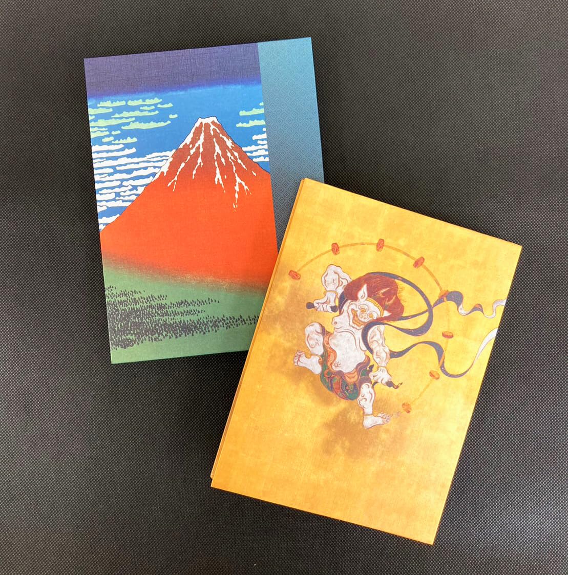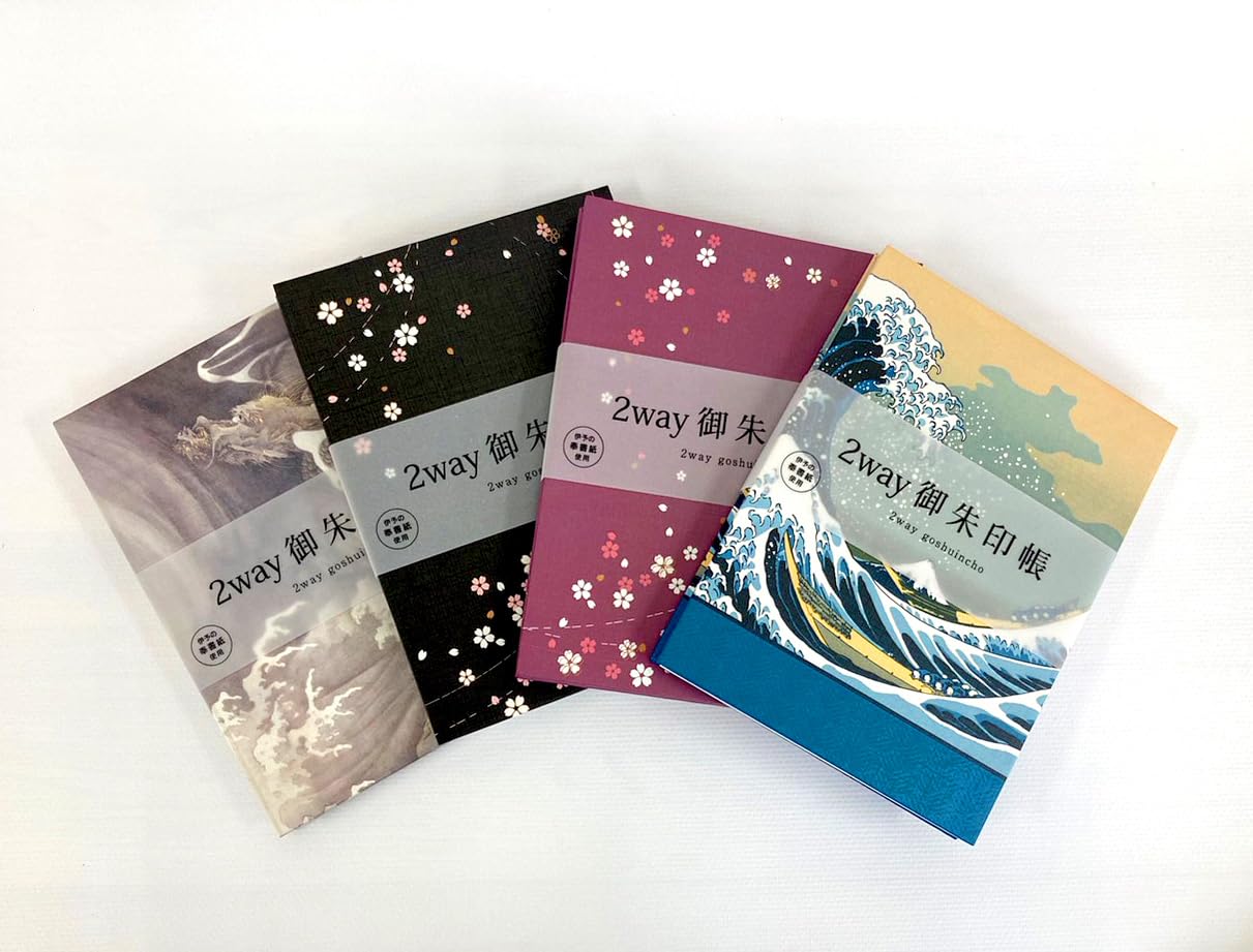 さくら紫は、お洒落で大人っぽい紫の生地に舞う桜に高級感があり、華やかな仕上がりになっており、さくら黒は、大人っぽい黒地に舞う桜に高級感があり華やかな仕上がりにいます。日本絵画の代表の一つ、葛飾北斎の【浮世絵】「富獄三十六景」「赤富士」は、江戸時代の人々と富士山の美しい風景が細部にわたって描かれており、浮世絵の芸術を身近に感じることができます。又、雲間に龍の勢いがデザインされた「雲龍」、琳派の風神雷神図をモチーフにしたデザインなど、バリエーションも豊富です。 この朱印帳のサイズは約195×145mmで、手に取りやすく、持ち運びに便利なサイズとなっています。中紙には奉書紙が使用されており、これは高品質な紙で、耐久性と美しさを兼ね備えています。この奉書紙は、朱印を受け取った際の保存性を高めるだけでなく、書き心地も非常に良いため、直書きにも適しています。