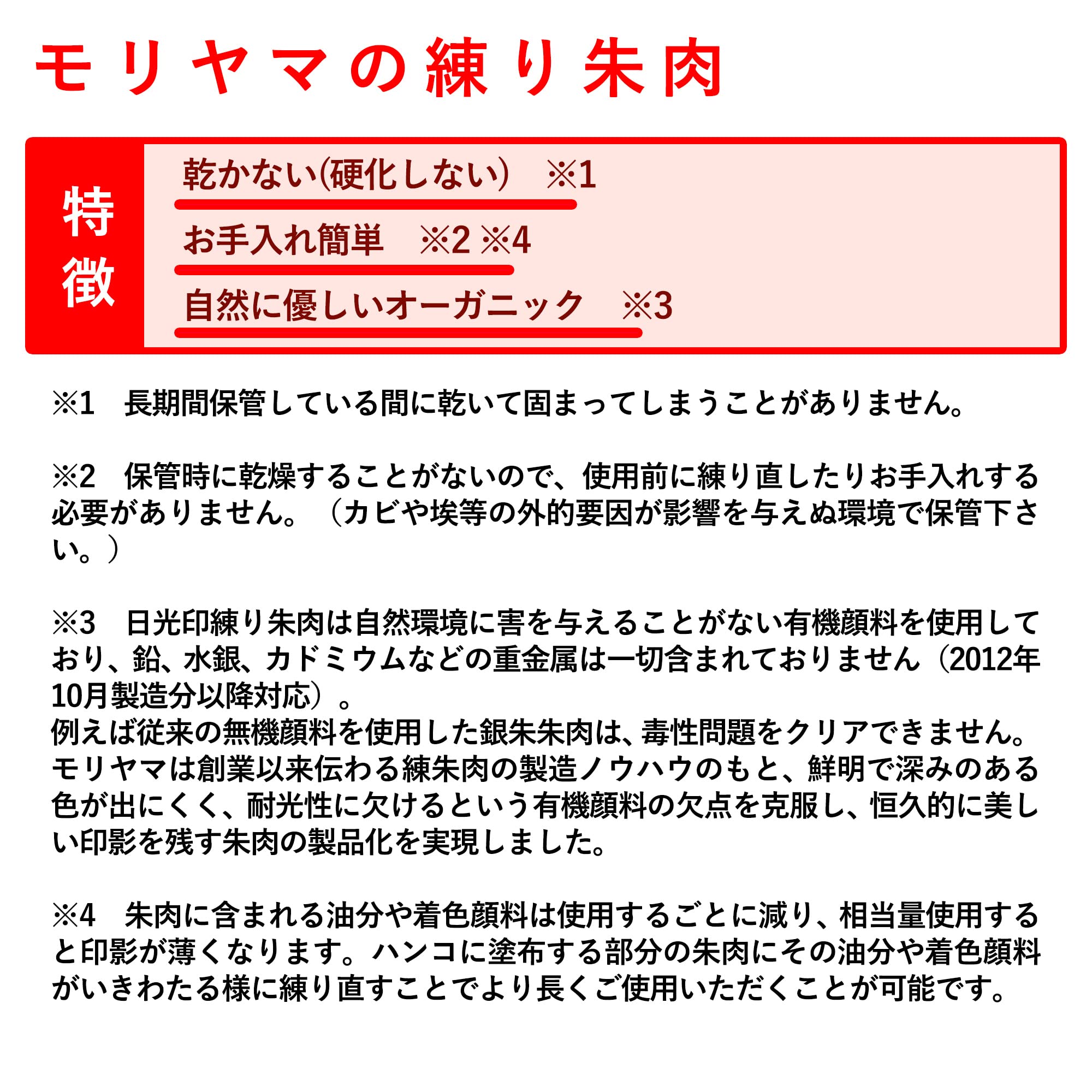日光印 印泥 40号 赤口 【容器】樹脂(ベークライト) 【朱肉】 有機顔料使用 / 艾(もぐさ)使用 お求め易い価格でありながら、朱の色合いとバリエーション、キメの細やかさなど、上質さに妥協のないコストパフォーマンスの高い練り朱肉。 朱肉はほんのり上品な墨の香り。温もりのある味わい深いプラスチックである黒ベークケース入。